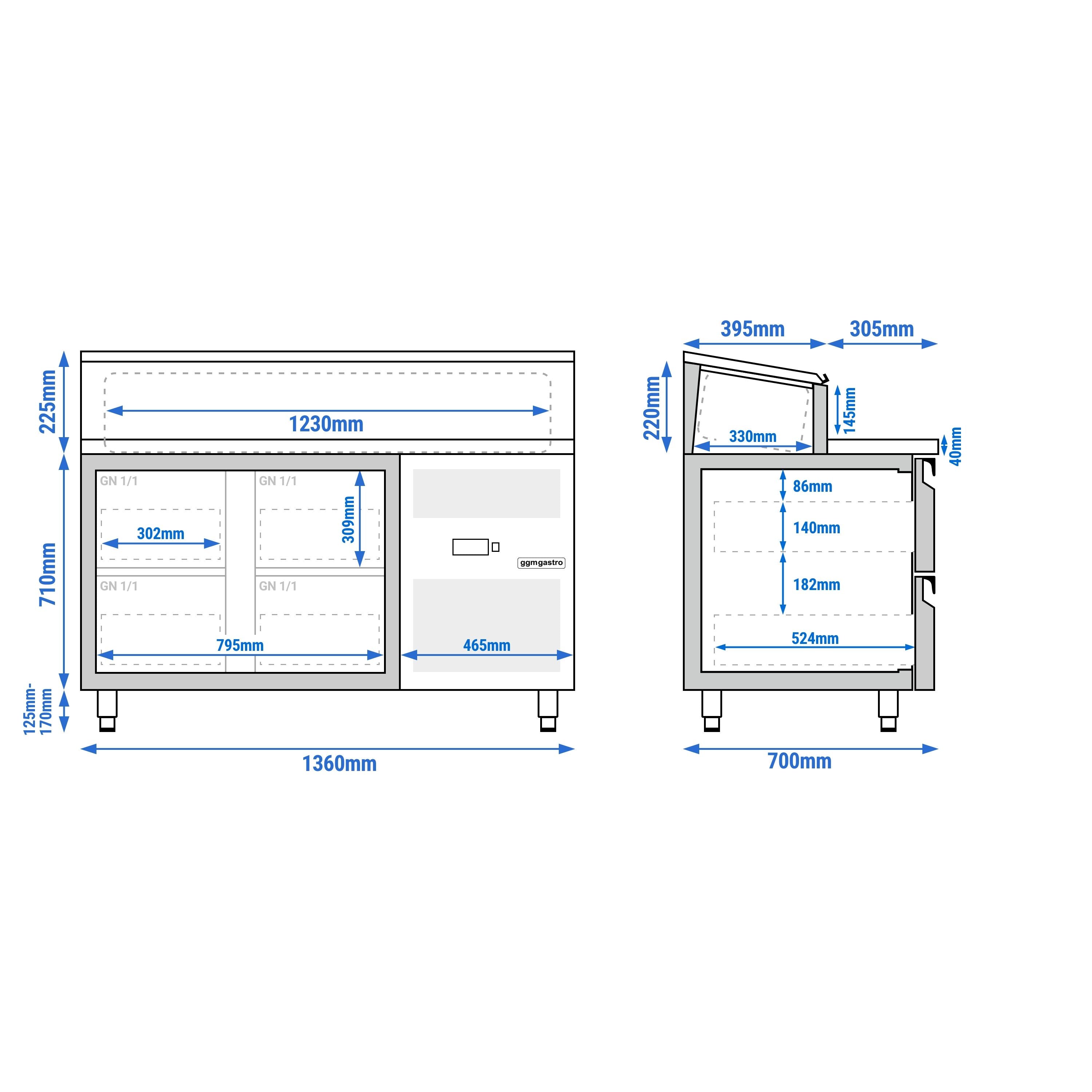- С вграден охлаждащ капак - за 7 x GN съдове 1/3