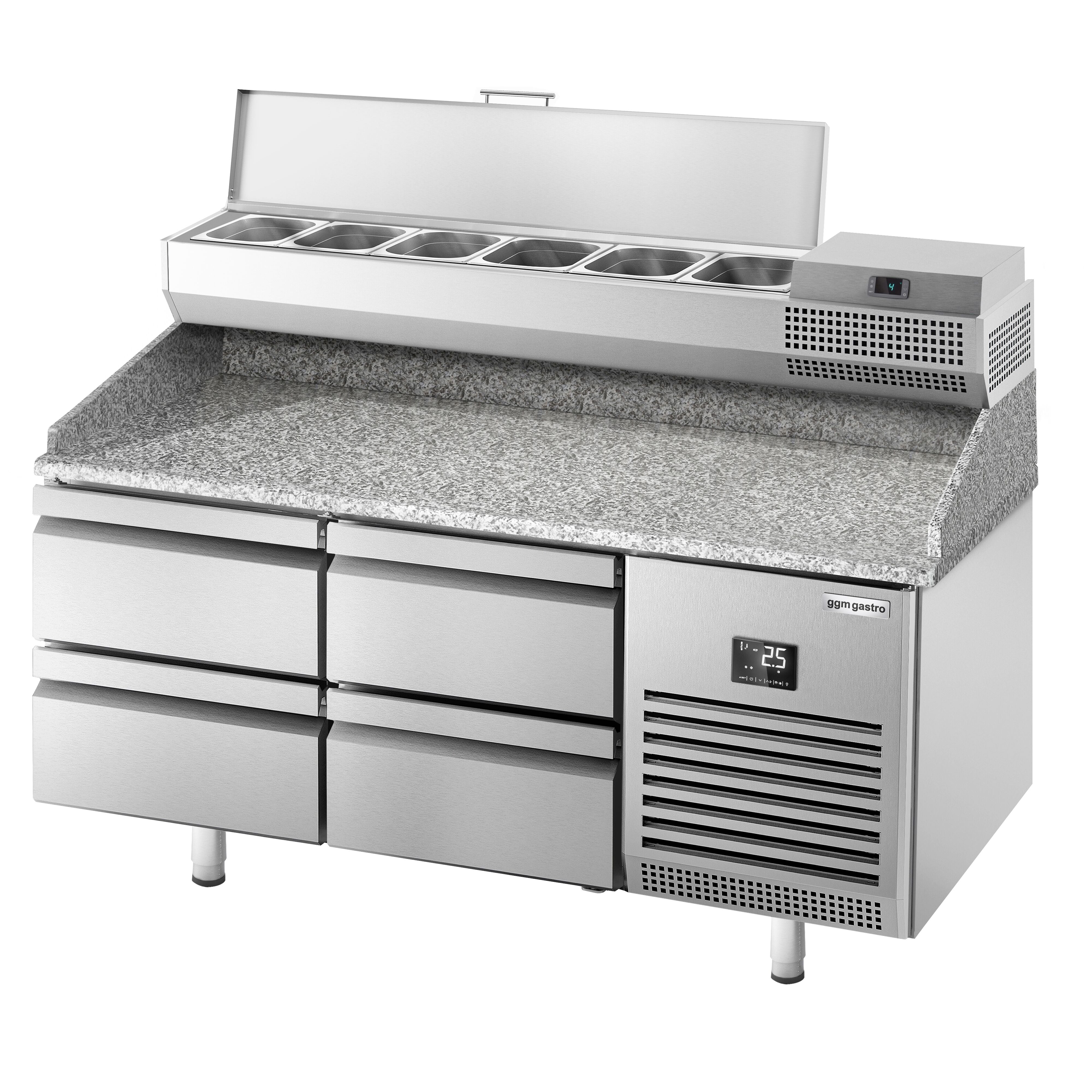 Охладителна маса за пица (GN) - с 4 чекмеджета 1/2 (GN 1/1) и охлаждаща горна витрина за 6x GN 1/4 контейнера