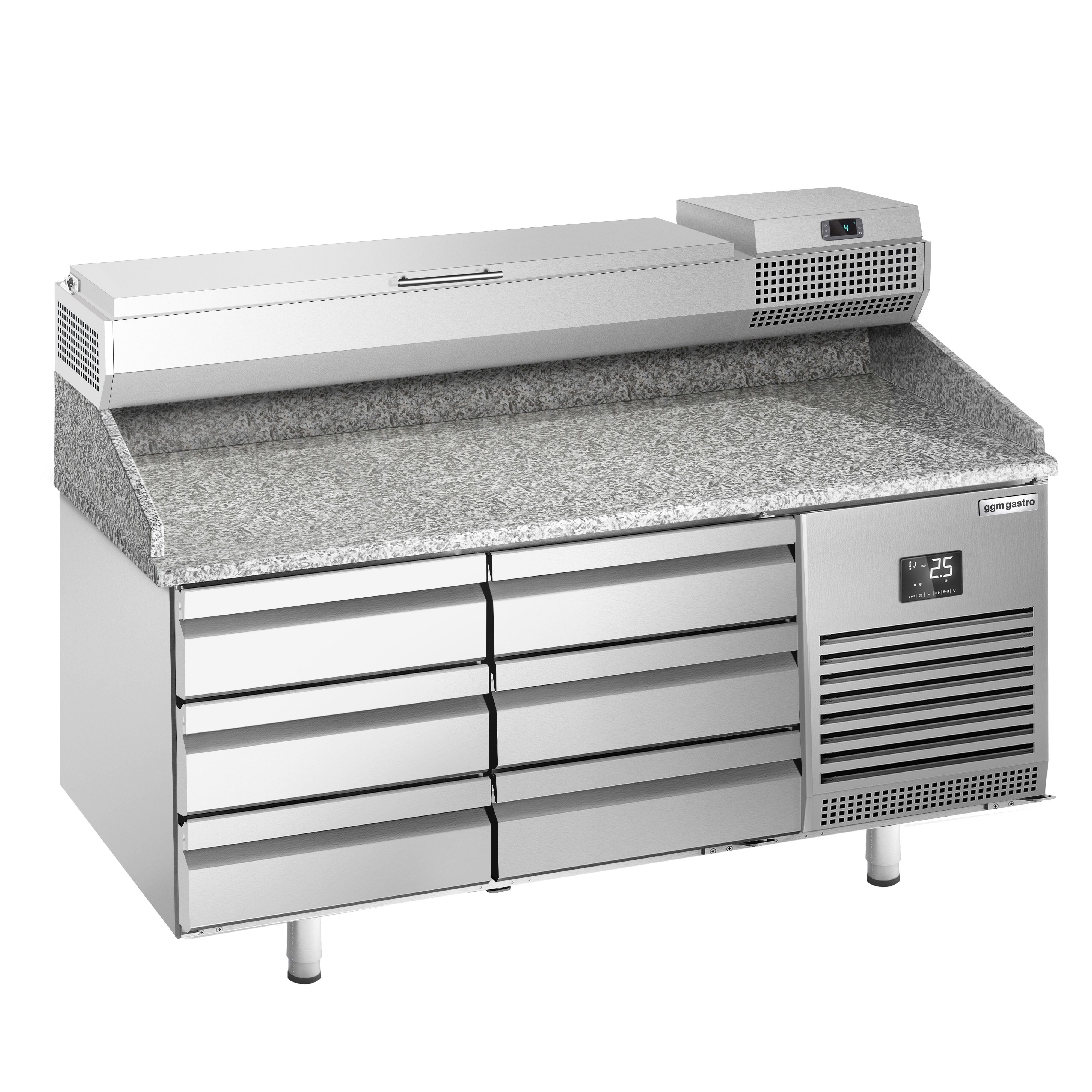 Охладителна маса за пица (GN) - с 6 чекмеджета 1/3 (GN 1/1) и охлаждаща горна витрина за 6x GN 1/4 контейнера