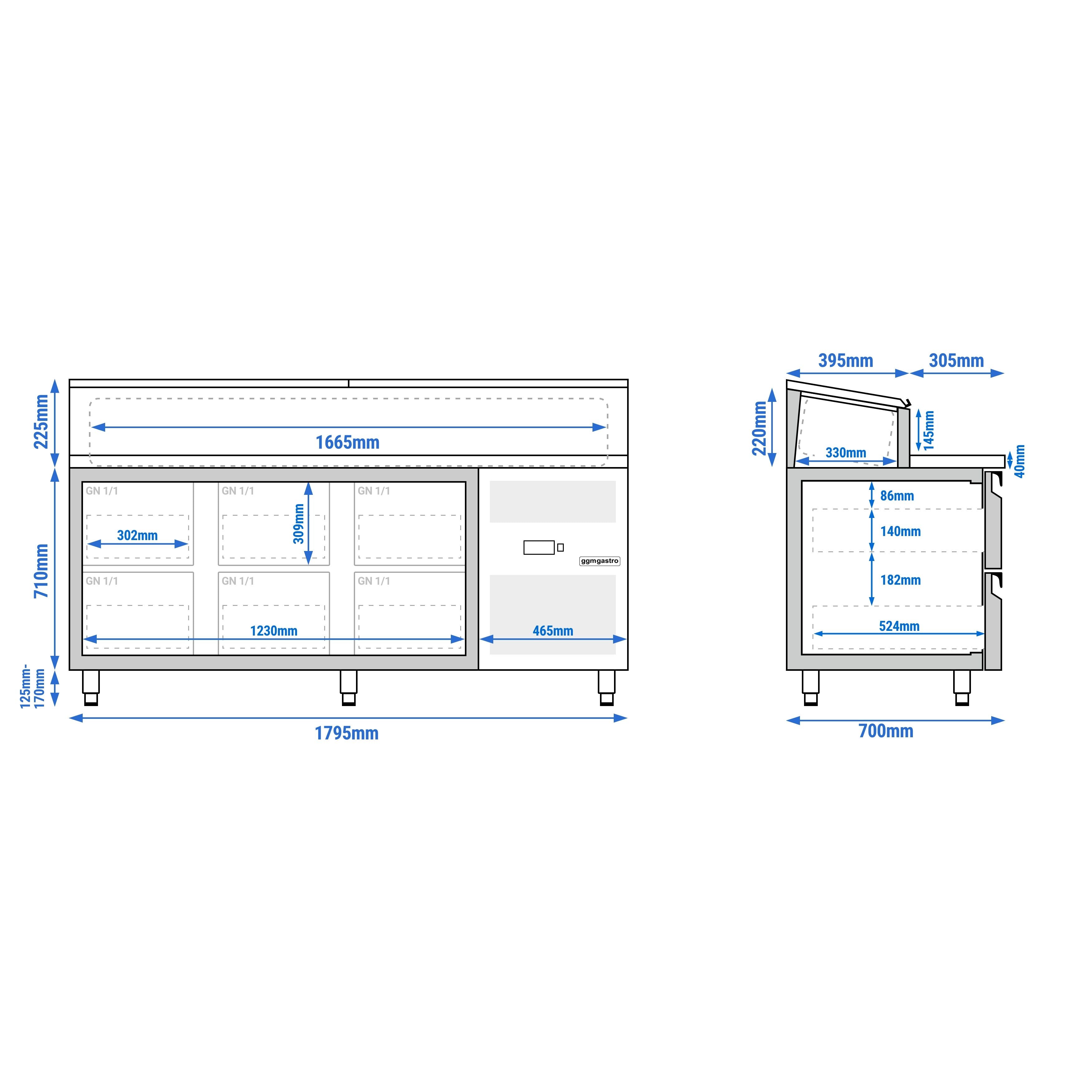 Подготвителна маса ECO - 1795 mm - за 8x GN 1/3 - 6 чекмеджета