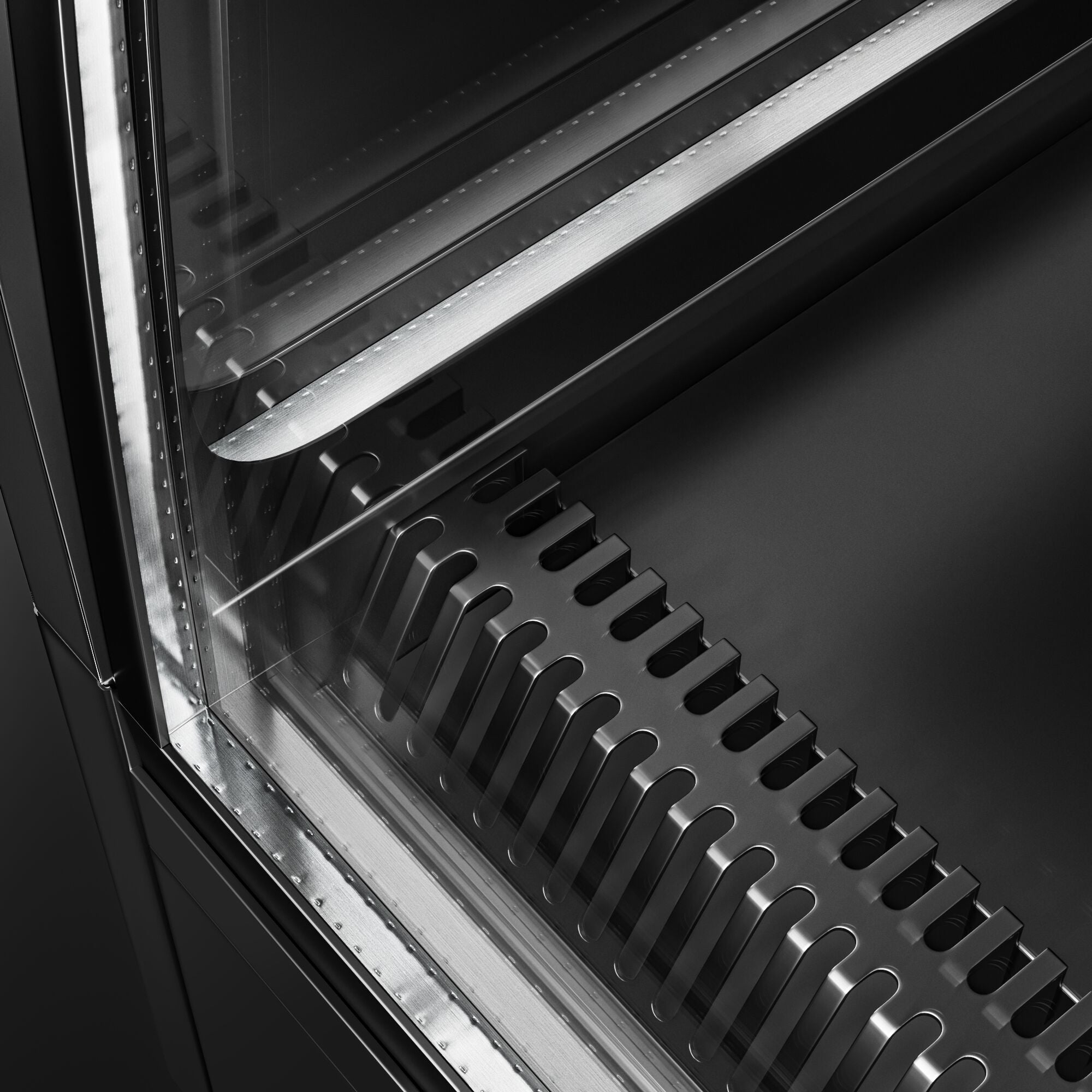 • Затворените плъзгащи се стъклени врати поддържат температурата в интериора по-постоянна и спомагат за пестенето на енергия.