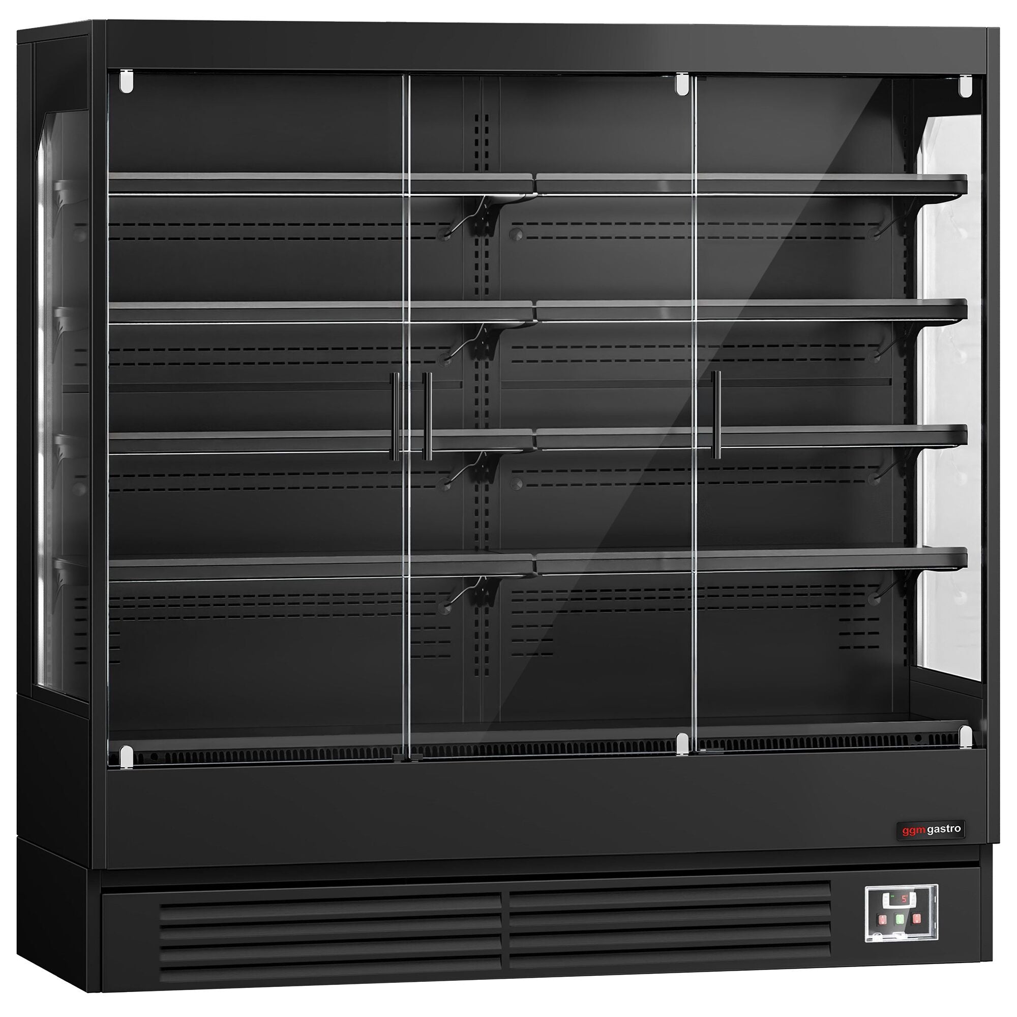 Стенна хладилна витрина с врати на панти - 1940 мм - 893 литра - с LED осветление, 3 стъклени врати и 4 рафта
