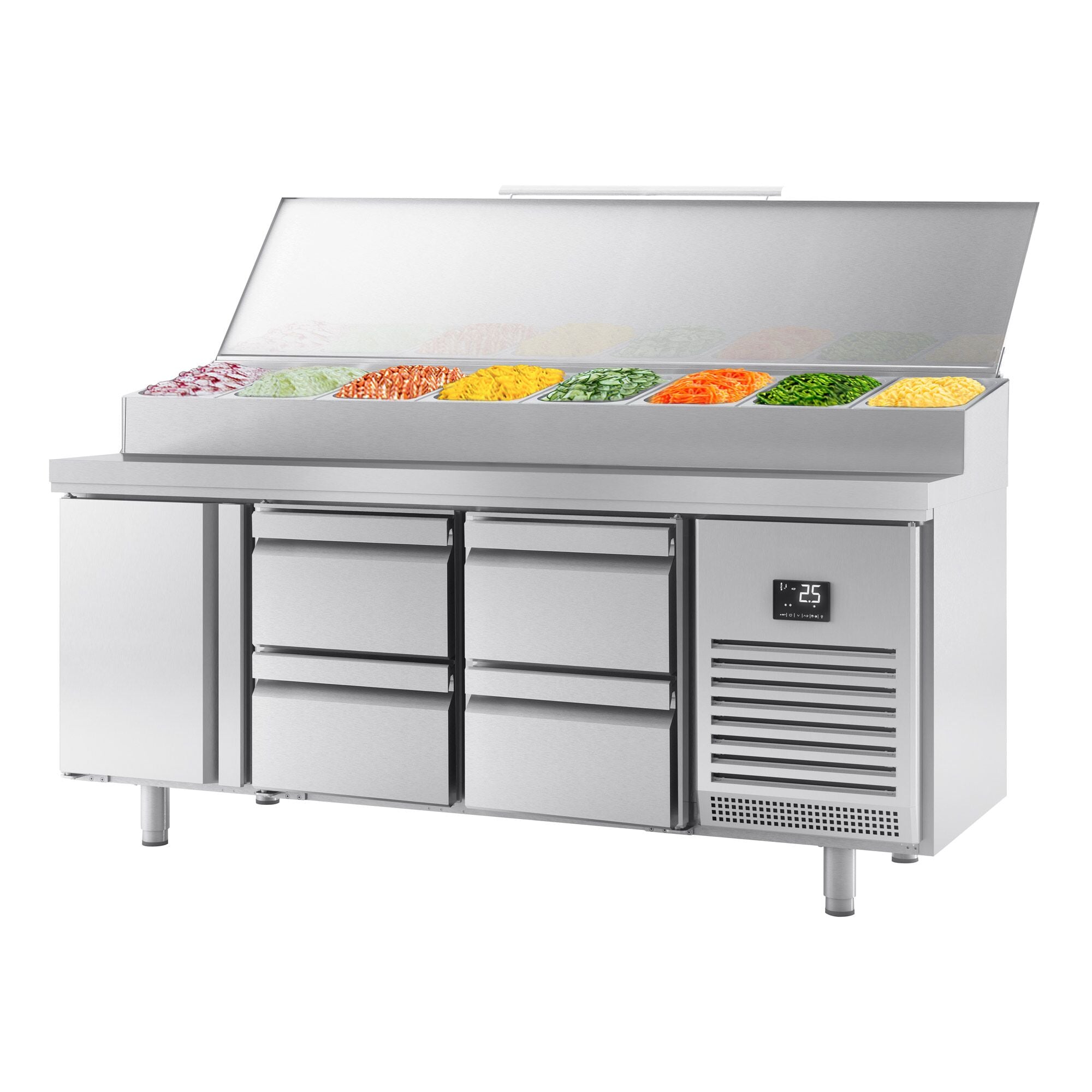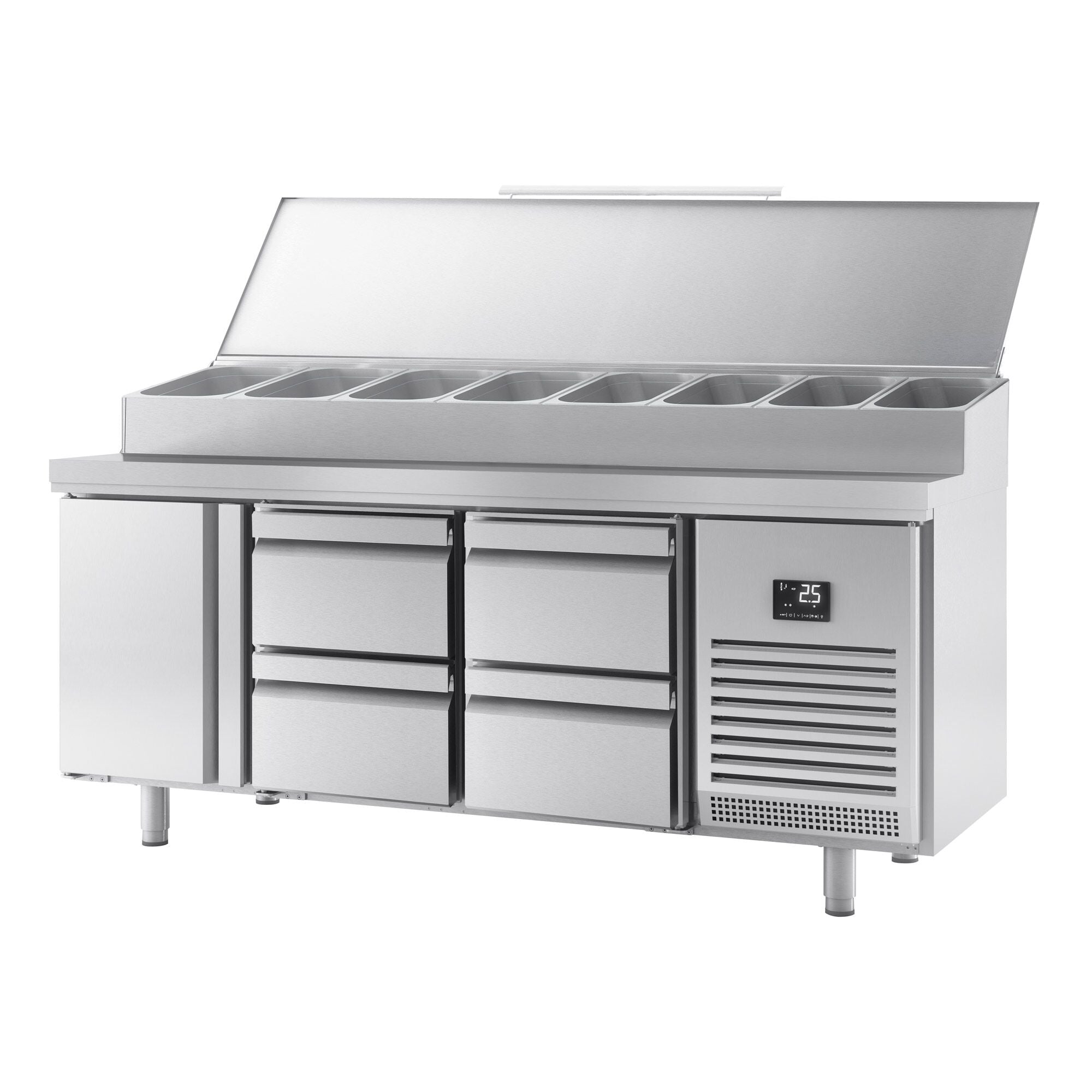 Хладилна маса - 1,96 х 0,7 м - с 1 врата и 4 чекмеджета 1/2