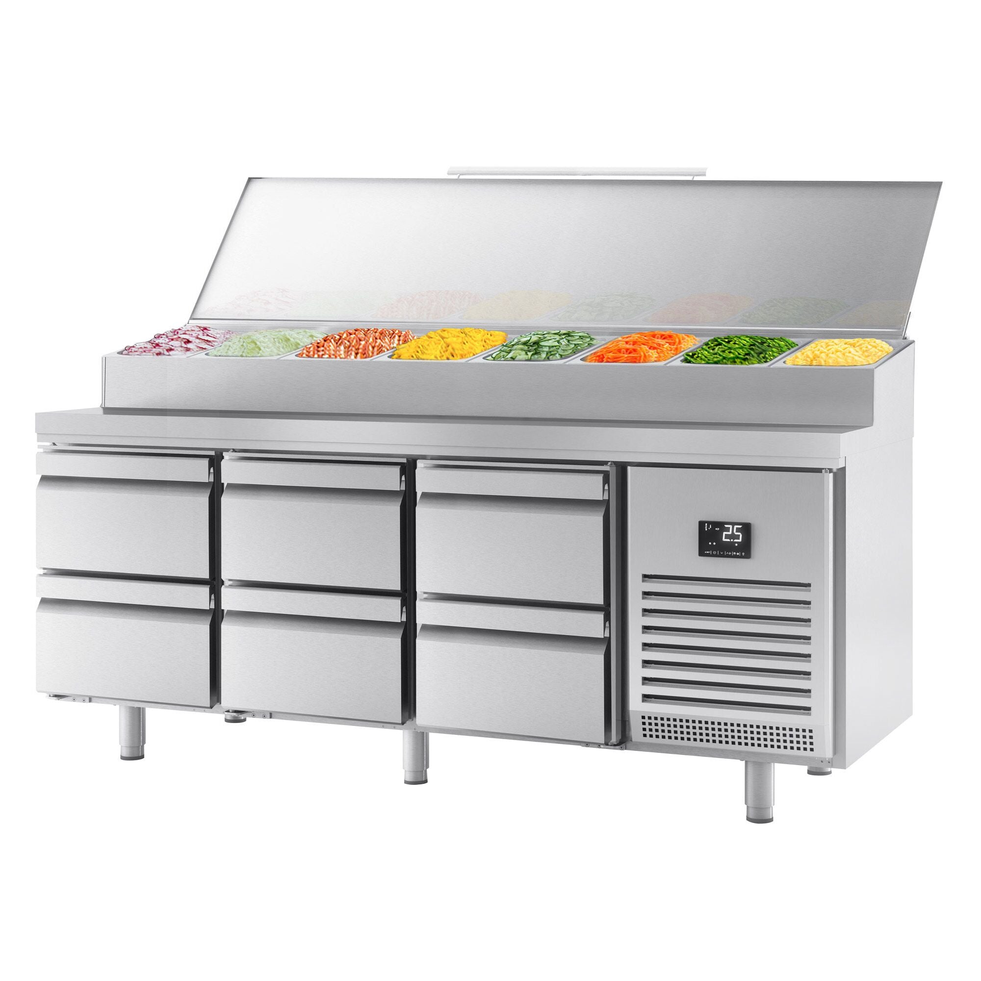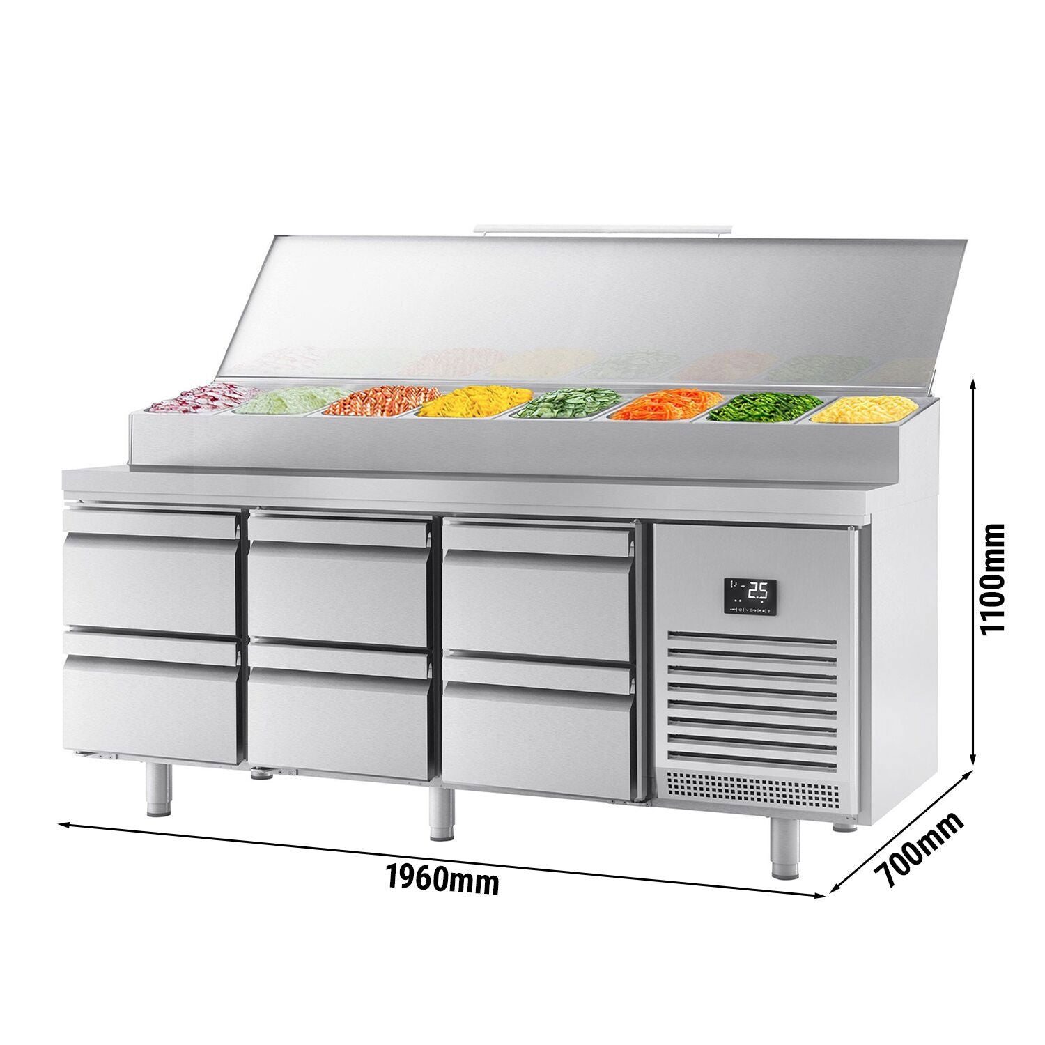 Хладилна маса (GN) - 1,96 х 0,7 м - с 6 чекмеджета 1/2