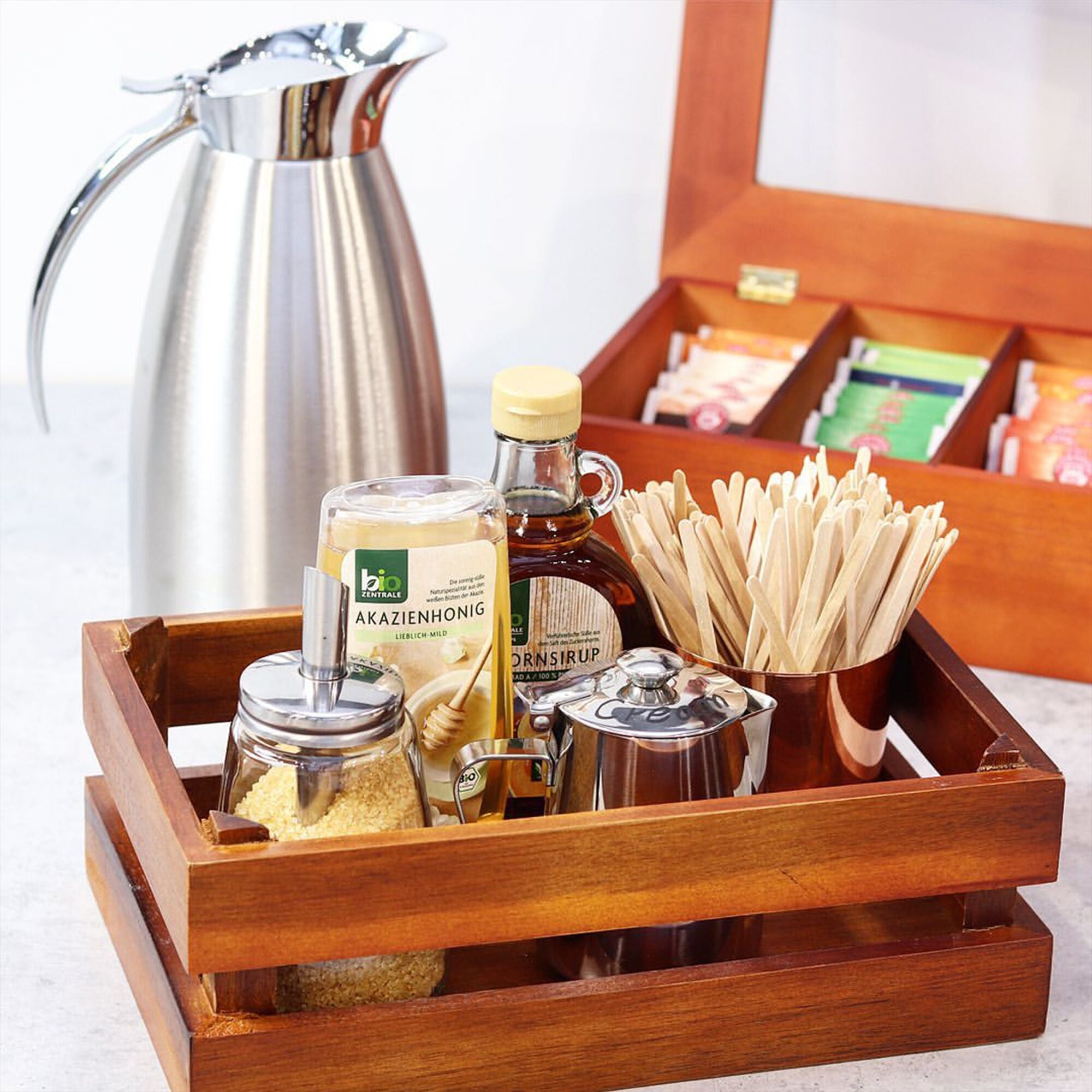 Кутия за чай - дърво - 4 отделения - с прозорче - без гравиране - кафява