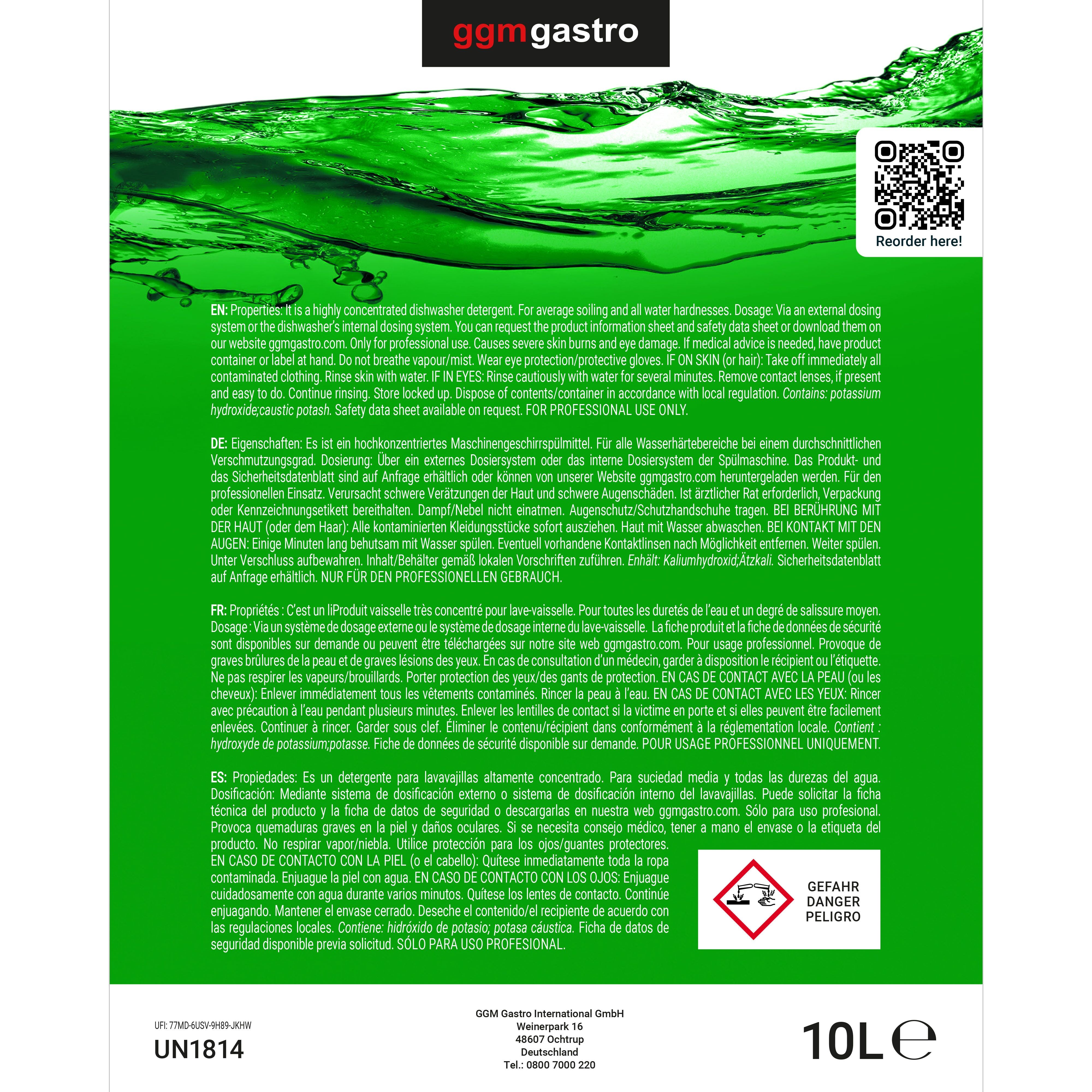 - Почистващото средство е подходящо за всички професионални миялни машини с един и няколко резервоара.