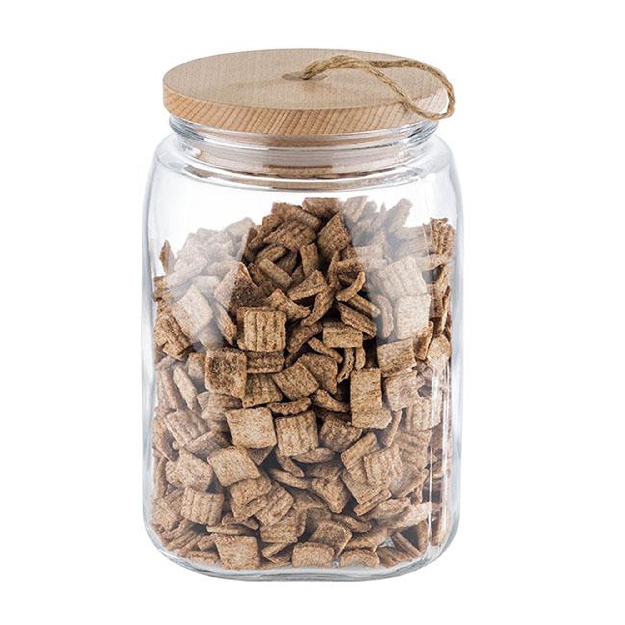 (6 броя) Буркан за съхранение - WOODY - 2,5 литра - с дървен капак, устойчив на аромати