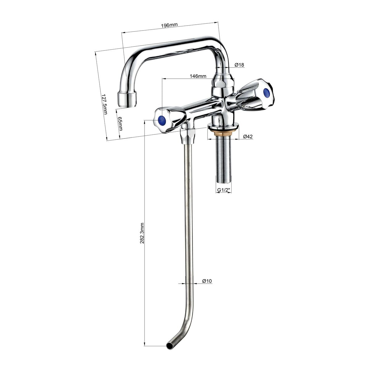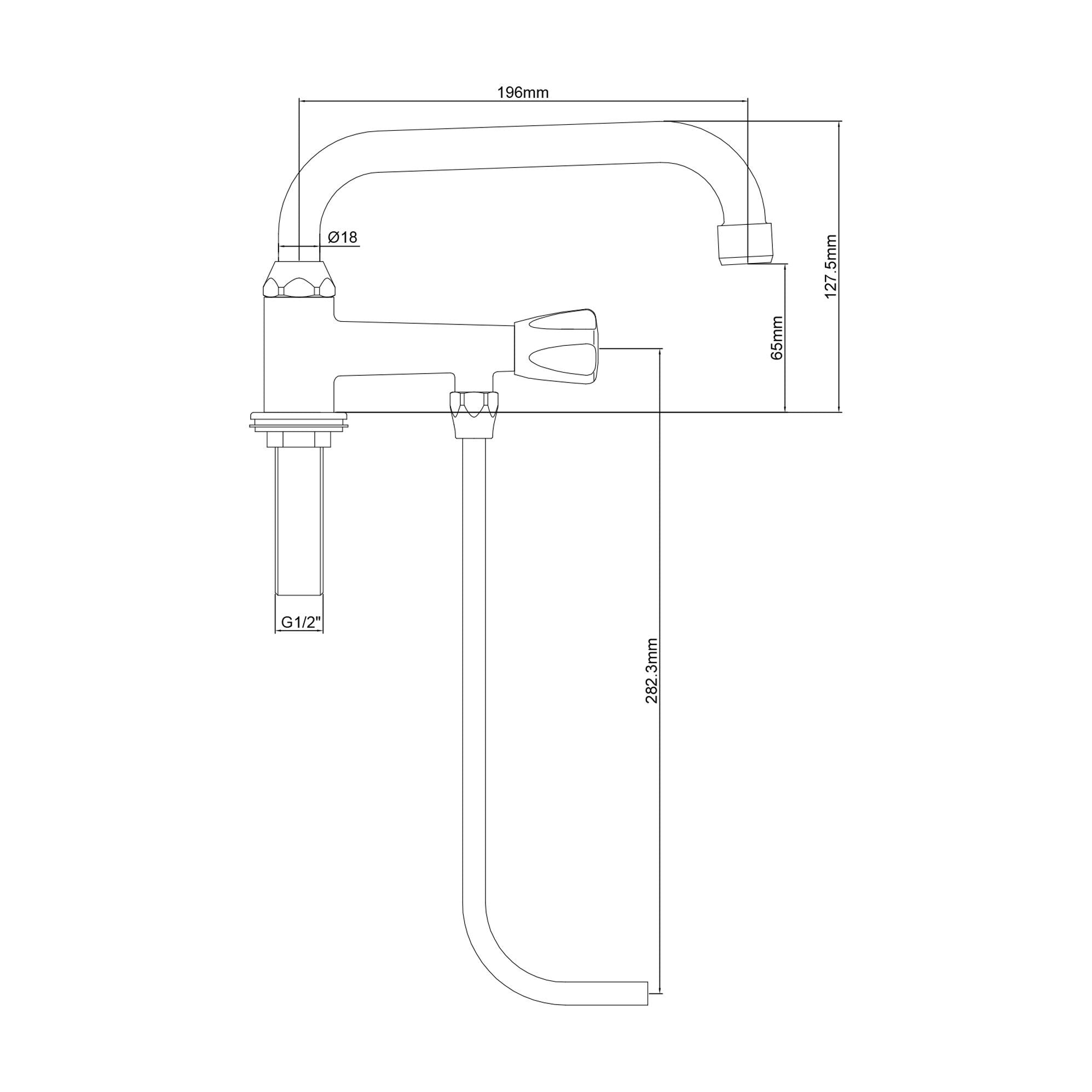 Батерия за единичен отвор с тръба под мивката и въртящ се кран
