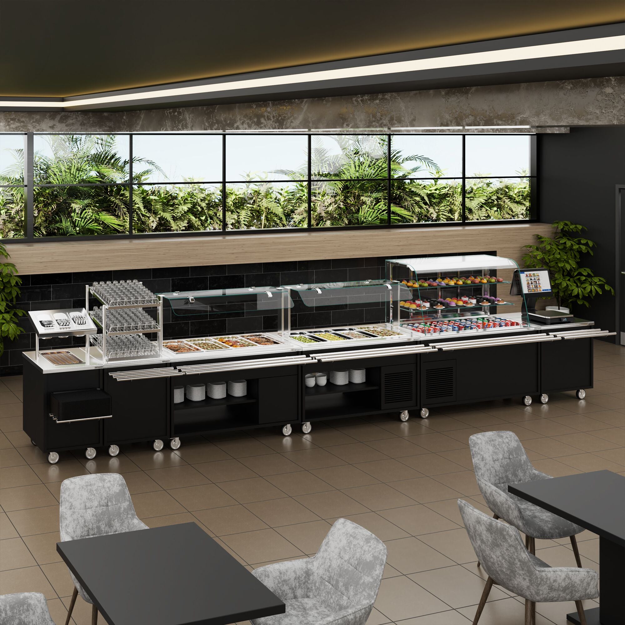 Топла количка за бюфет DANZIG - 1300 мм - за 3x GN 1/1 - с плъзгаща се табла - черна
