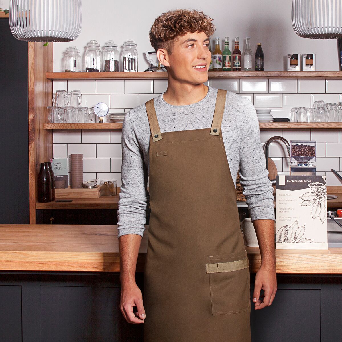 - Стилна, модерна престилка с лигавник и визия на кепър с кръстосани презрамки за облекчаване на врата