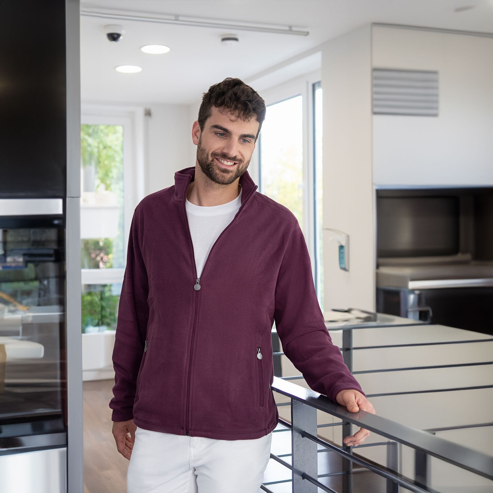- Мъжко яке от полар за работно облекло Warm-UP, изработено от рециклирана пластмаса.