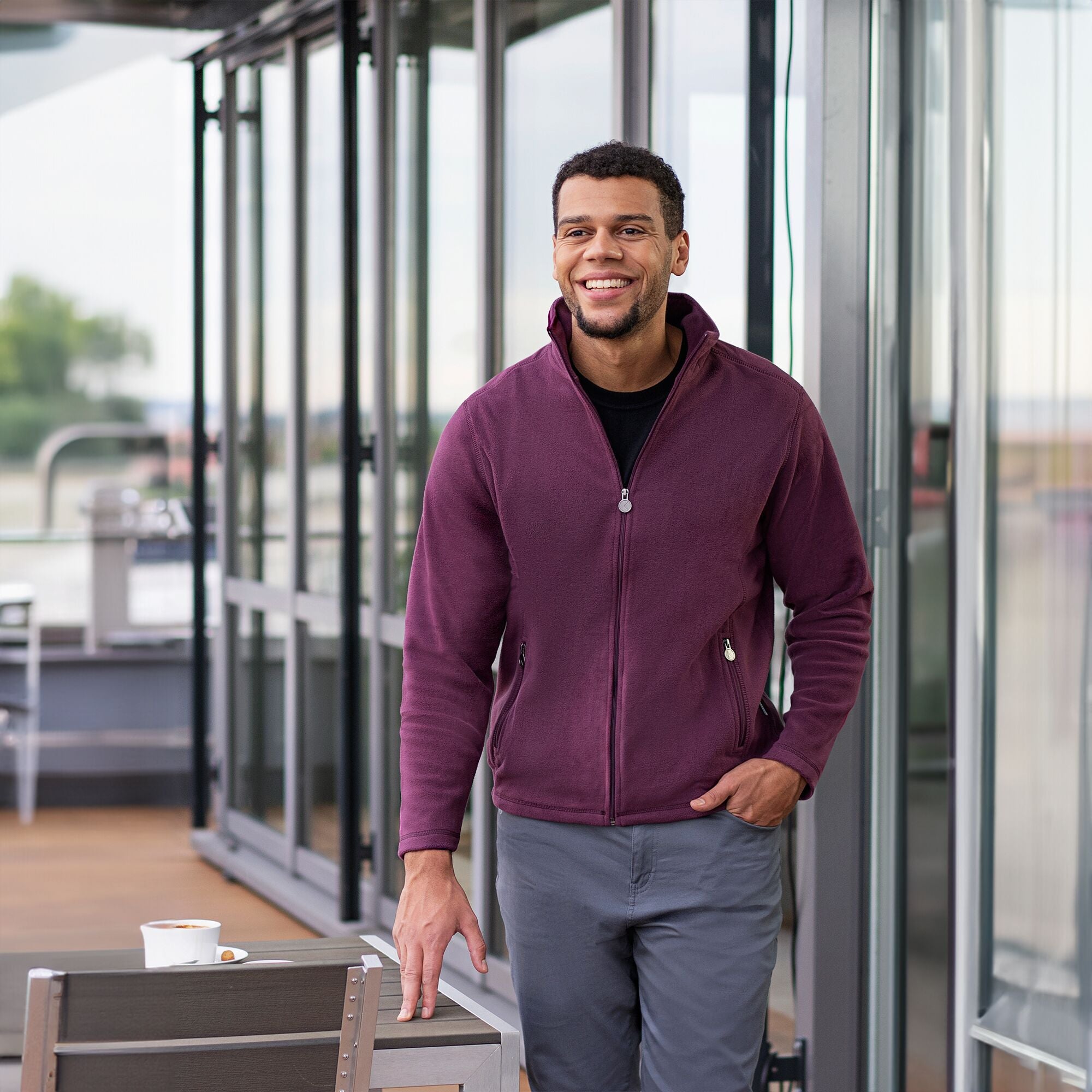 - Мъжко яке от полар за работно облекло Warm-UP, изработено от рециклирана пластмаса.