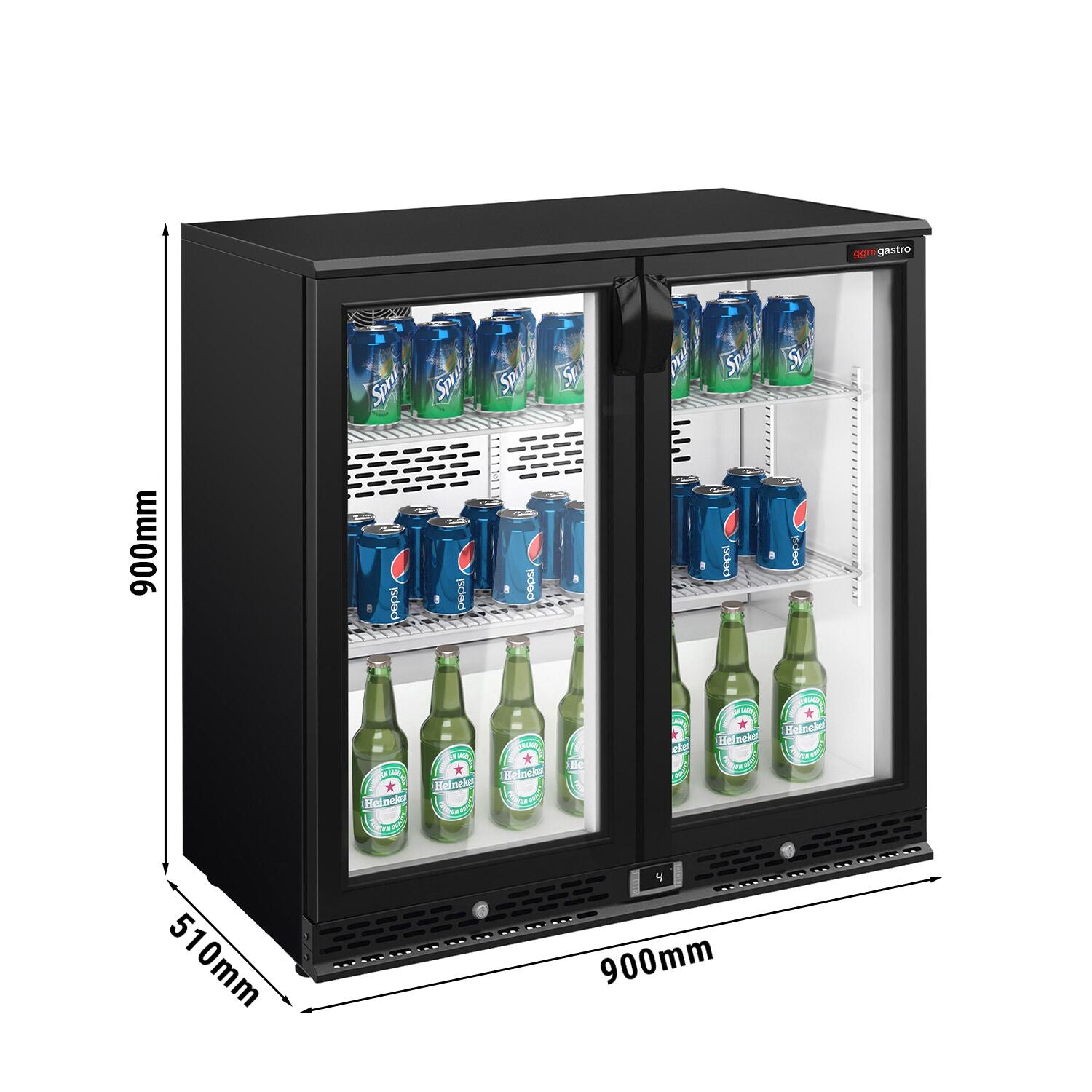 Хладилна маса за бар напитки - 0,9 х 0,51 м - 193 литра - с 2 стъклени врати - черна