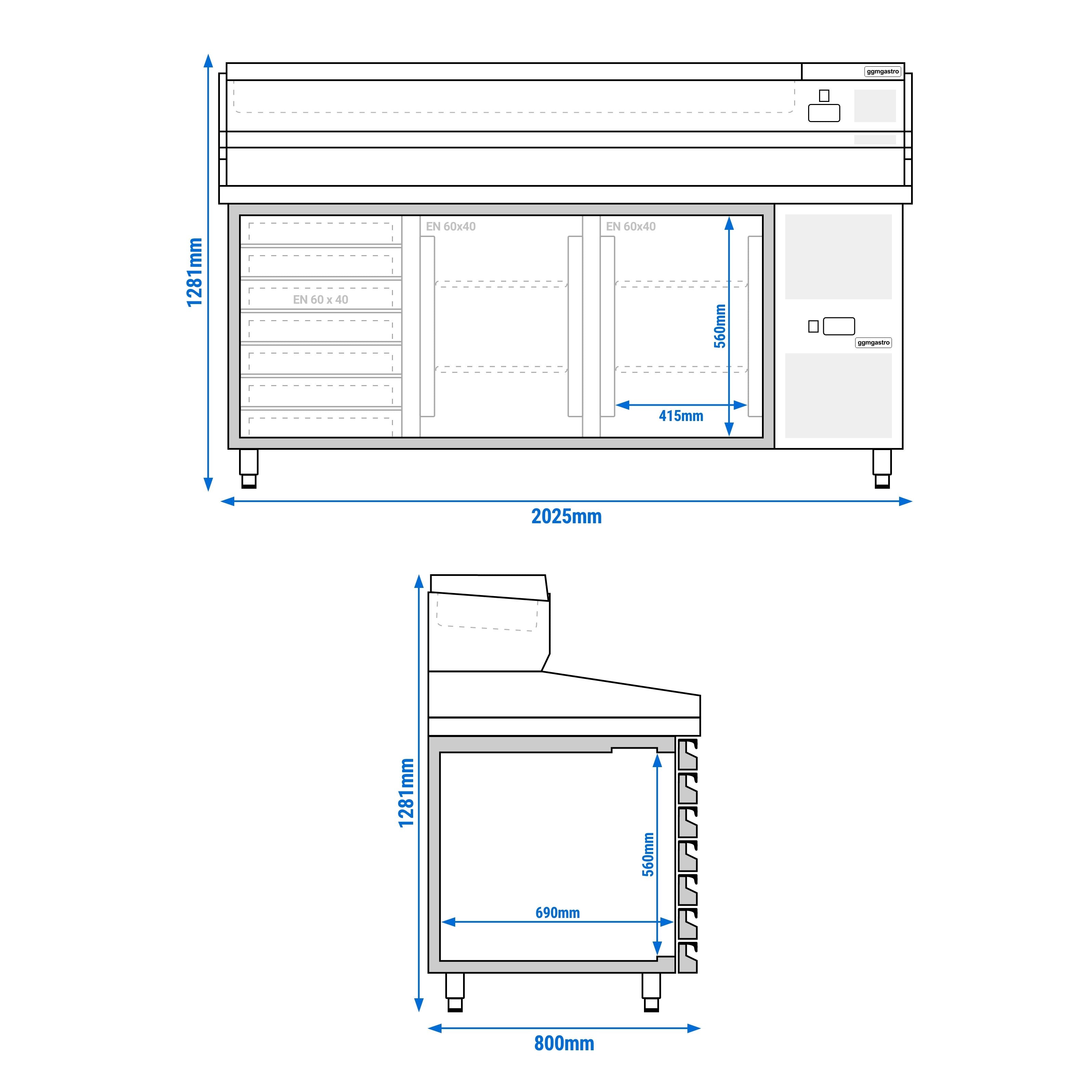 Хладилна маса за пица PREMIUM 2,0 x 0,8 м - с 2 врати и 7 неутрални чекмеджета