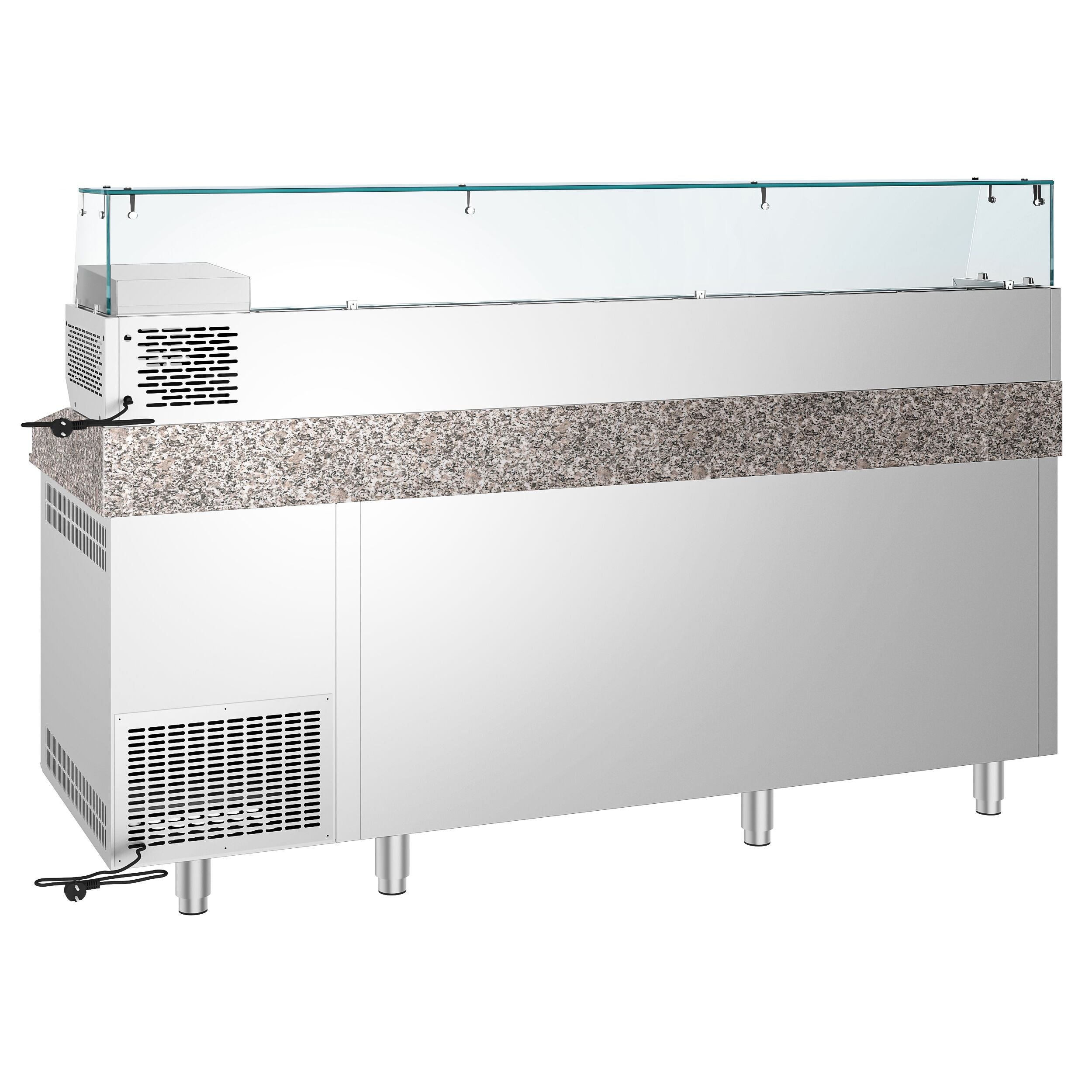 Хладилна маса за пица с 3 врати, чекмеджета и хладилна витрина за 10 х GN 1/3 контейнера