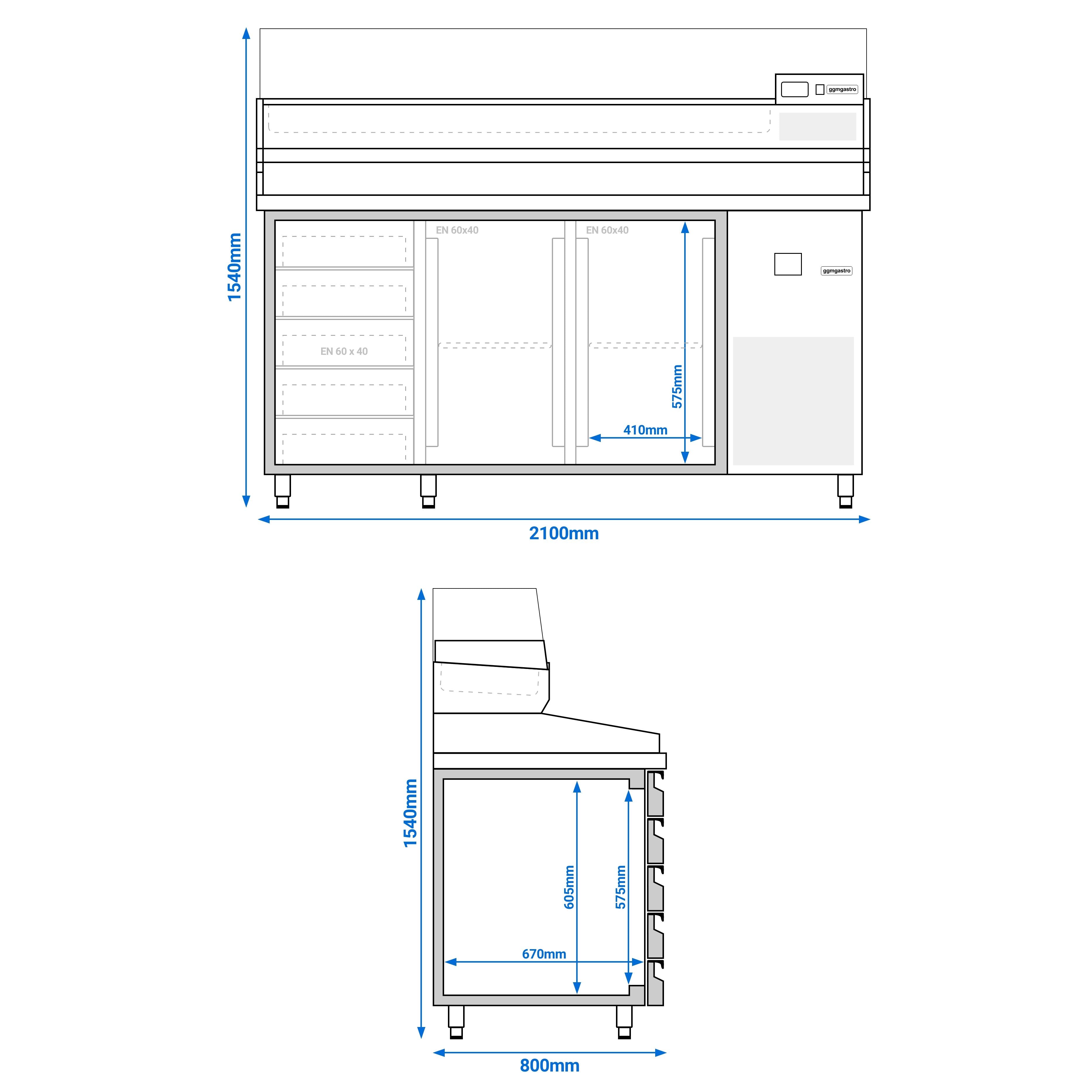 Хладилна маса за пица с 3 врати, чекмеджета и хладилна витрина за 10 х GN 1/3 контейнера
