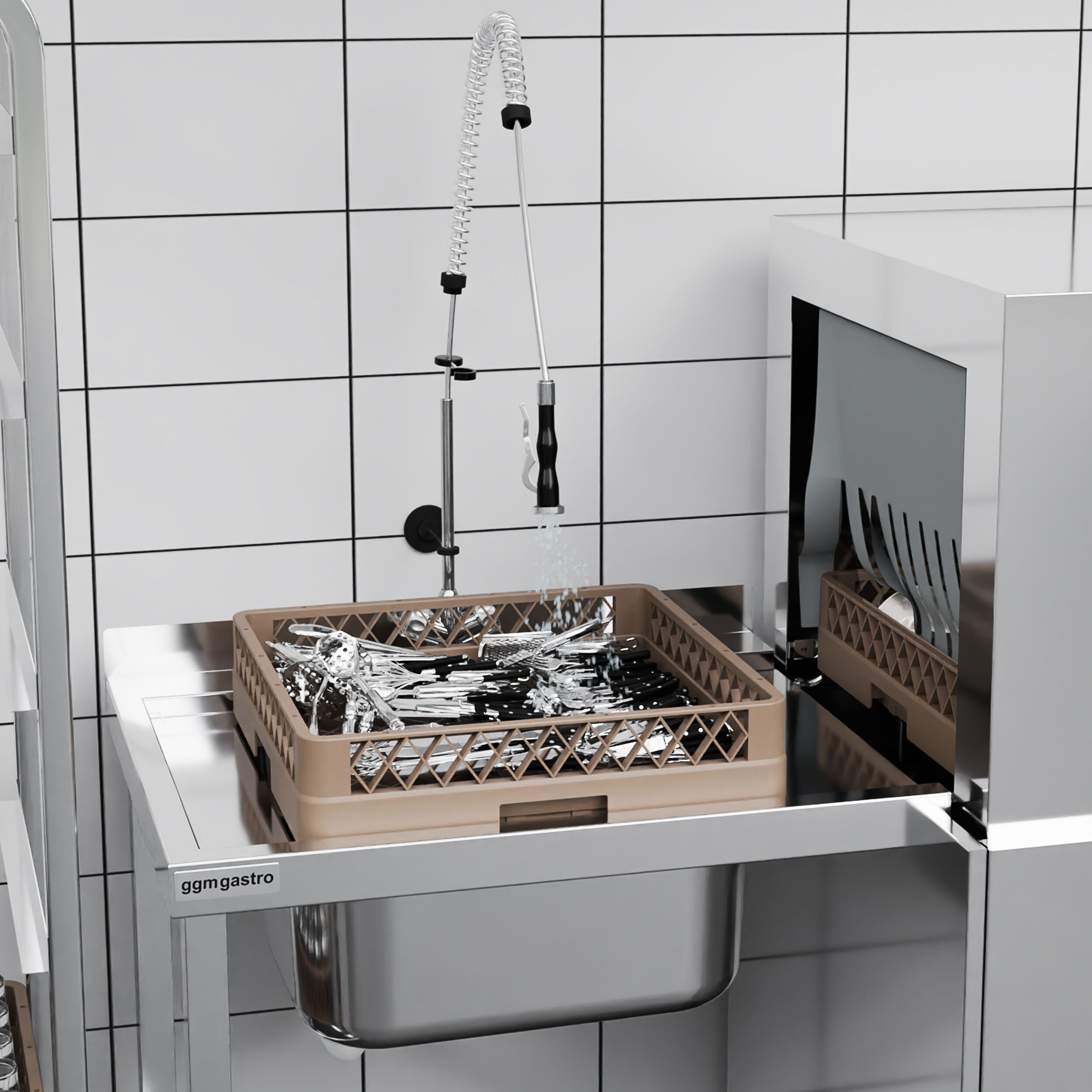 - Конвейерна съдомиялна машина с подаваща маса вляво