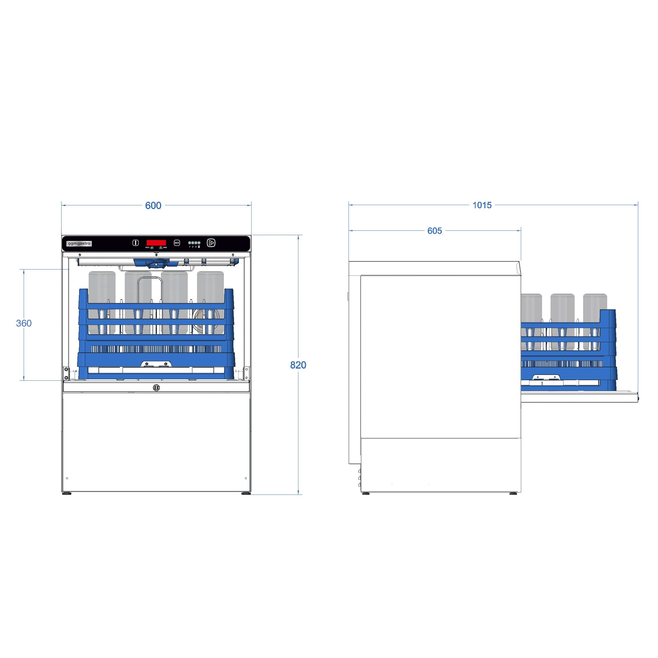 Миялна машина за съдове и бутилки 7,45 kW - без помпа за луга - с помпа за детергент и захранване с изплакващо средство