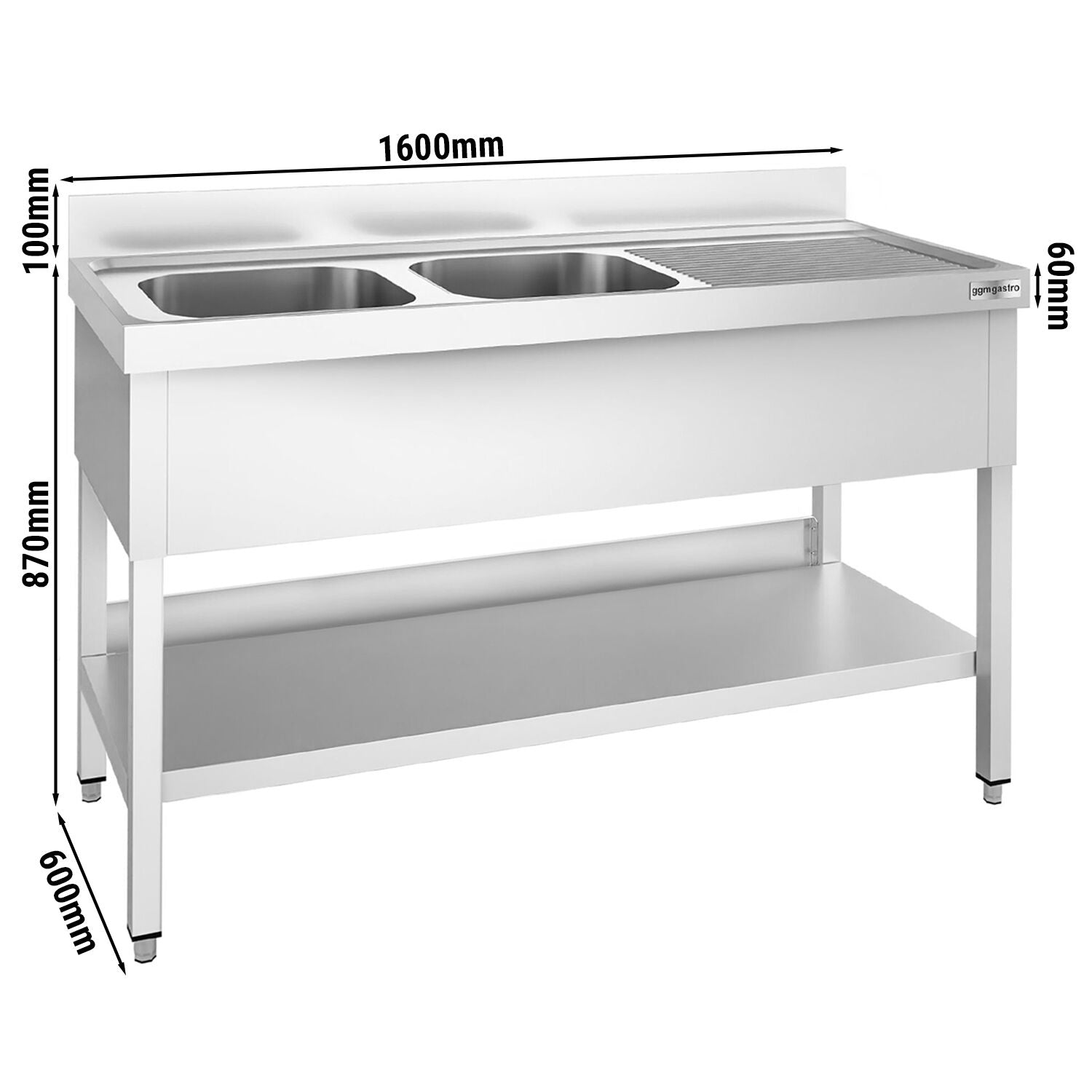 Мивка с дъно 1,6m - 2 легена отляво L 40 x Ш 40 x Д 25 cm