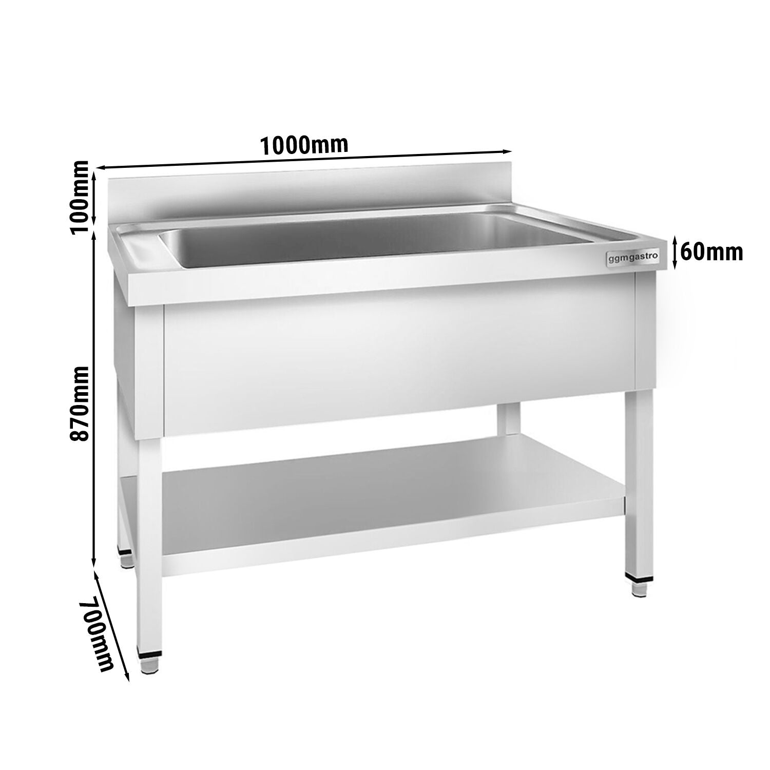 Мивка с дъно за тенджери 1,0 м - 1 леген Д 86 х Ш 50 х Дълб 38 см