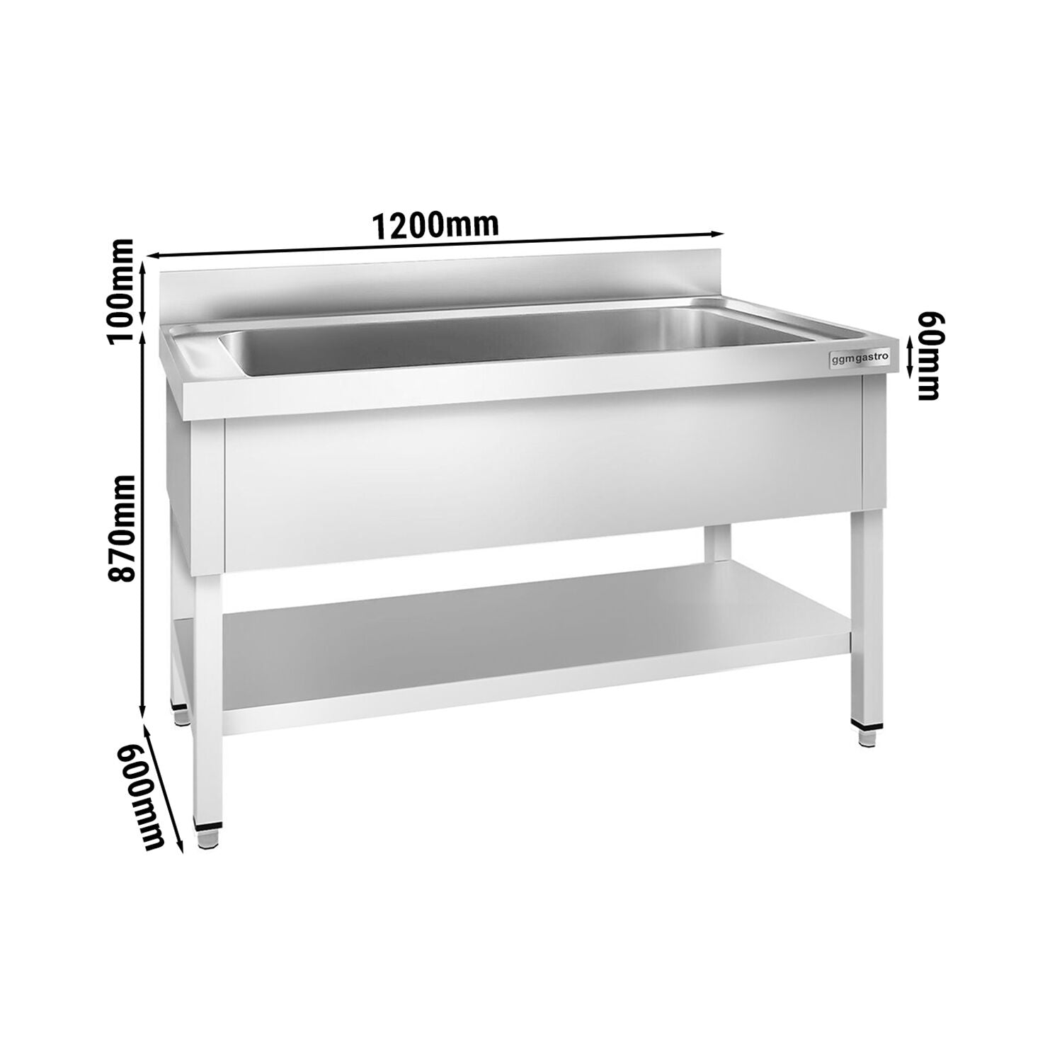Мивка с дъно за тенджери 1,2 м - 1 леген Д 95 х Ш 42 х Дълб 35 см