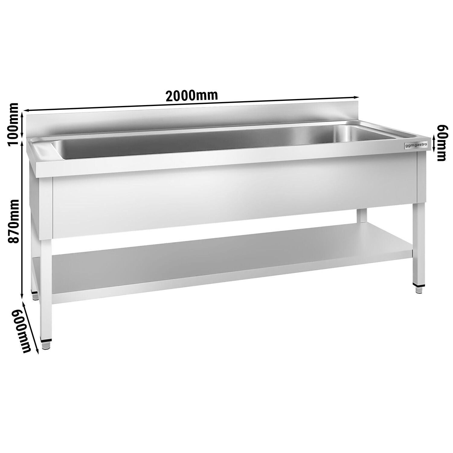 Мивка с дъно за тенджери 2,0 м - 1 леген Д 180 х Ш 50 х Дълб 35 см