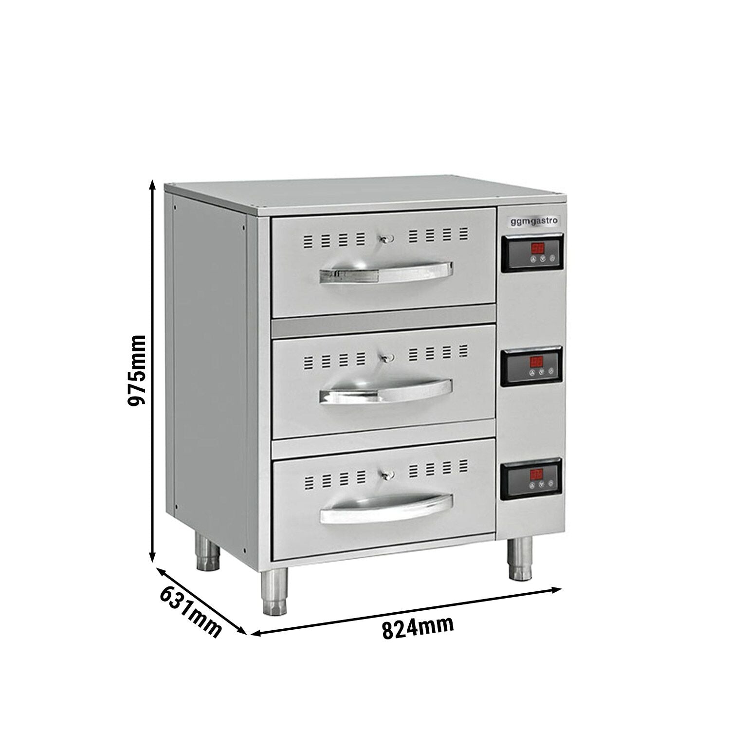 Отоплителен шкаф с 3 чекмеджета - 0,82 m - GN 1/1