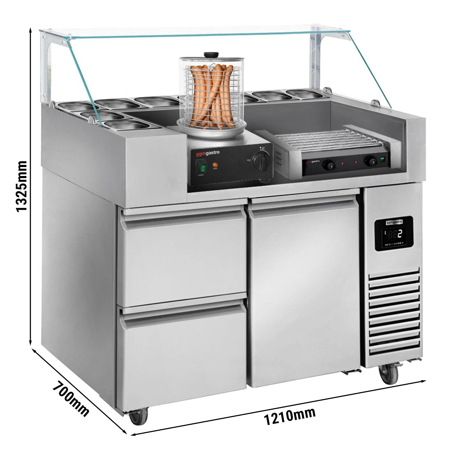 Подготвителна маса - 1,21 х 0,7 м - с 1 врата и 2 чекмеджета 1/2 - вкл. Хот Дог Грил и Хот Дог Машина