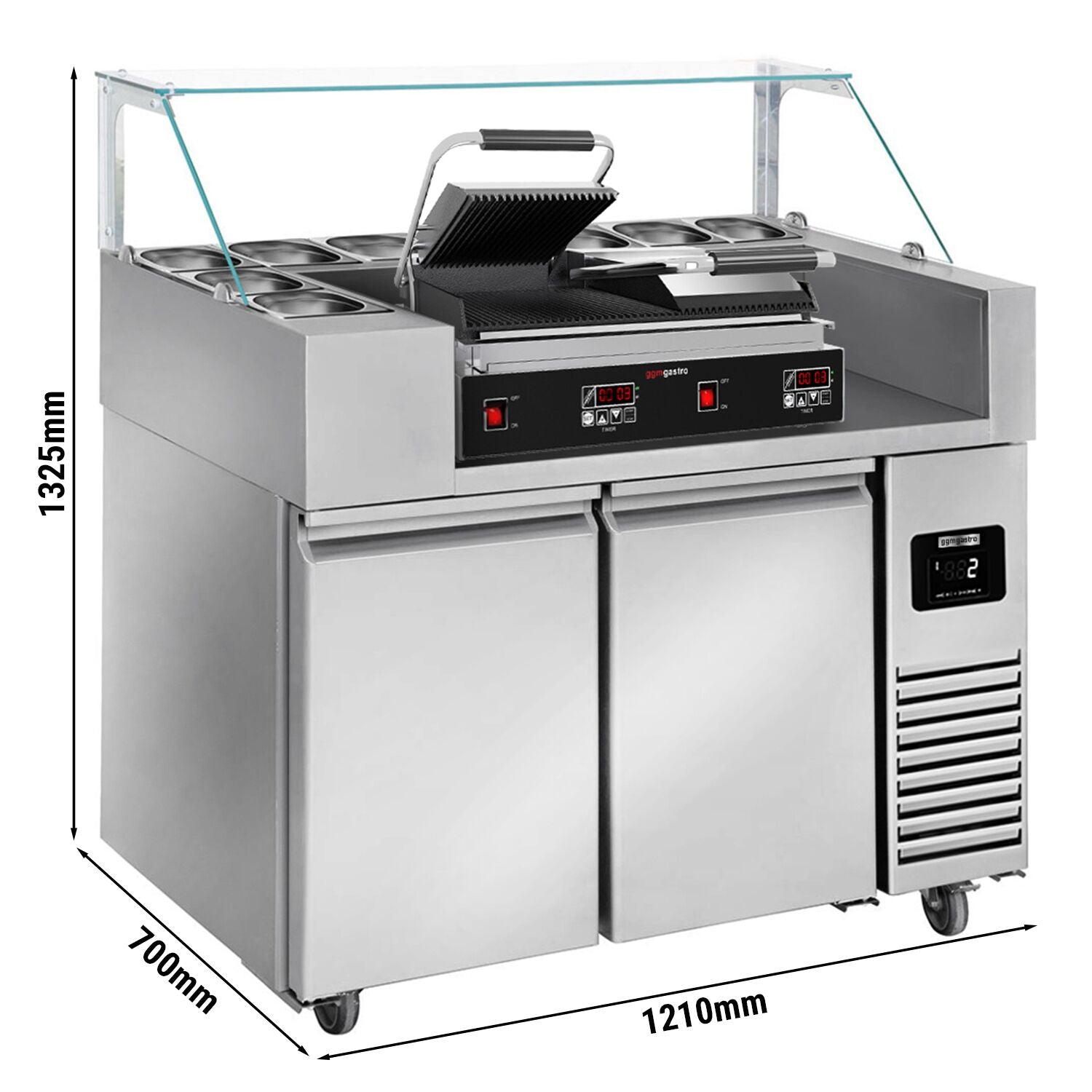 Подготвителна маса - 1,21 х 0,7 м - с 2 врати - вкл. Контактна скара