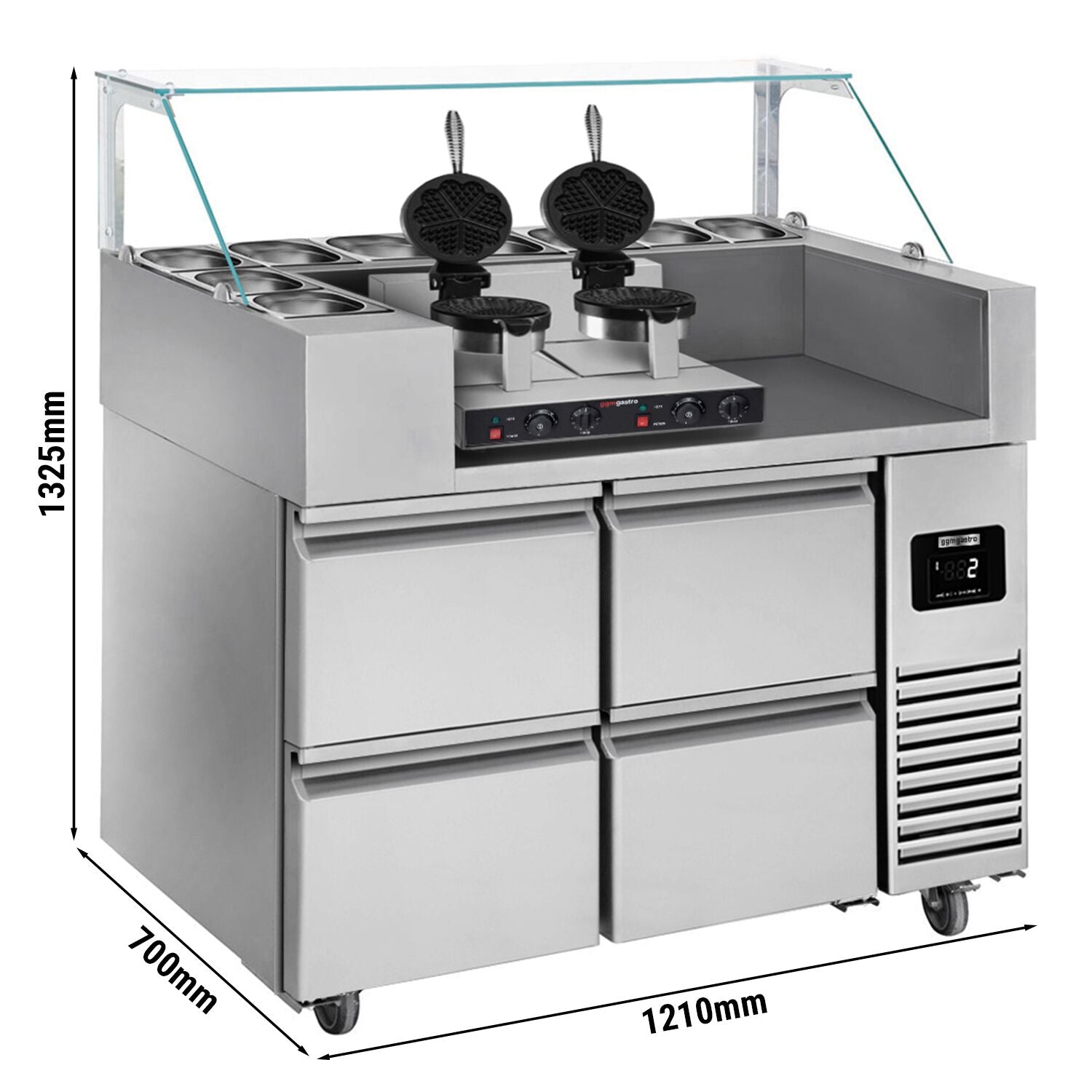 Подготвителна маса - 1,21 х 0,7 м - с 4 чекмеджета 1/2 - вкл. гофретник - форма на сърце