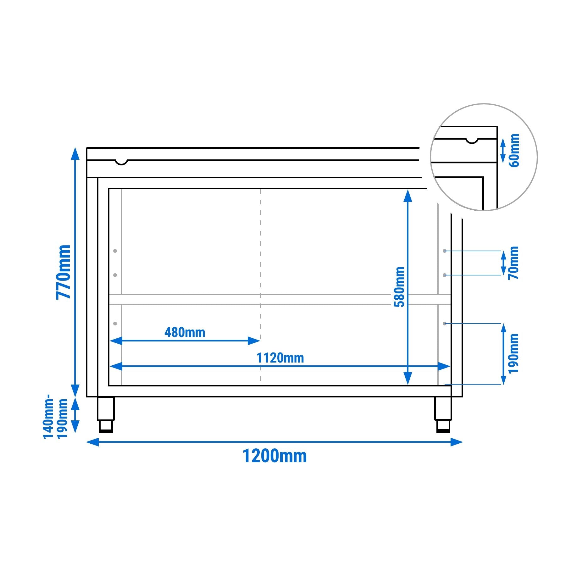 - Ш x Д x B: 1.200 mm x 600 mm x 910 mm