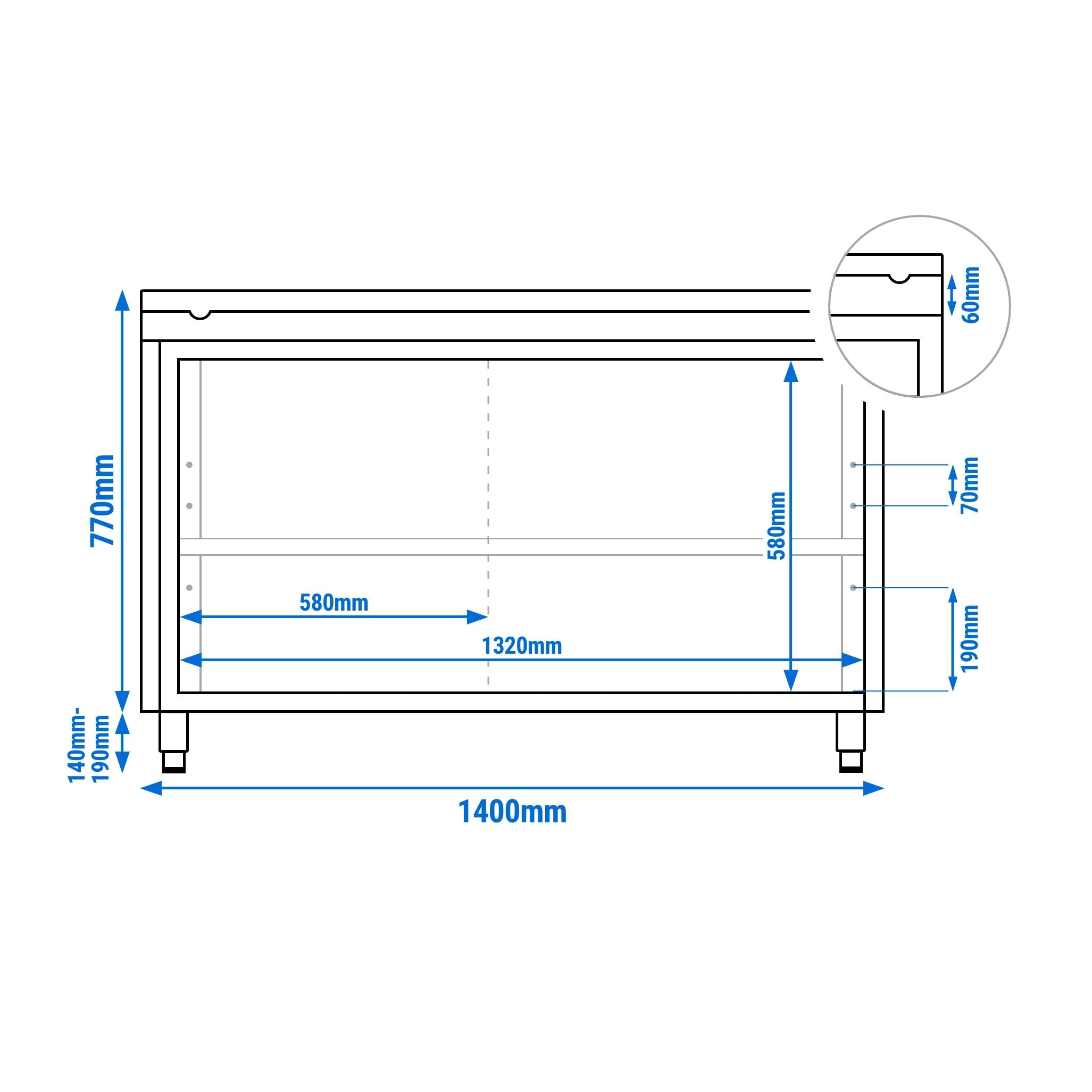 - Ш x Д x B: 1.400 mm x 700 mm x 910 mm
