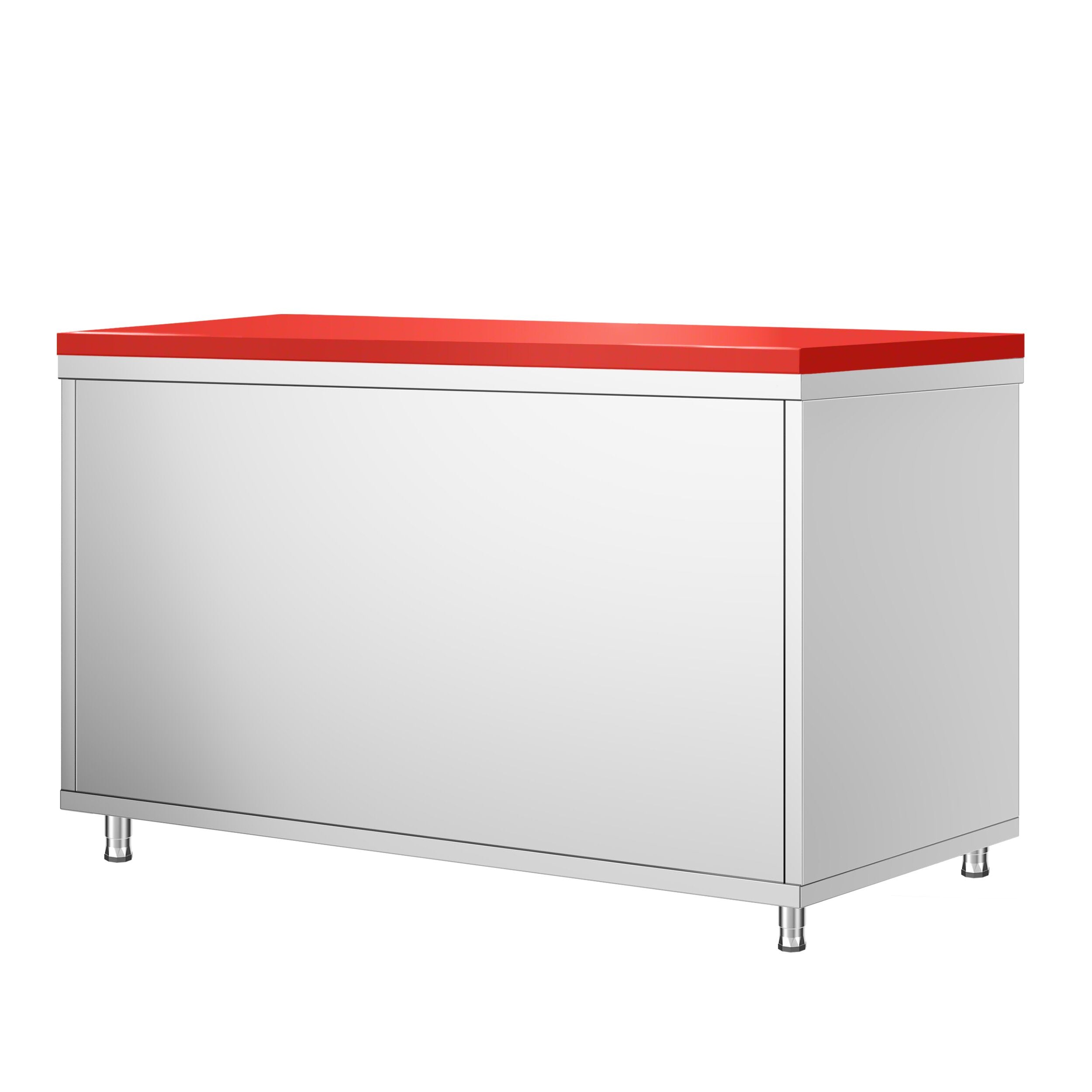 Работен шкаф от неръждаема стомана PREMIUM - 1,4 м - с плъзгаща се врата - включително дъска за рязане в червено