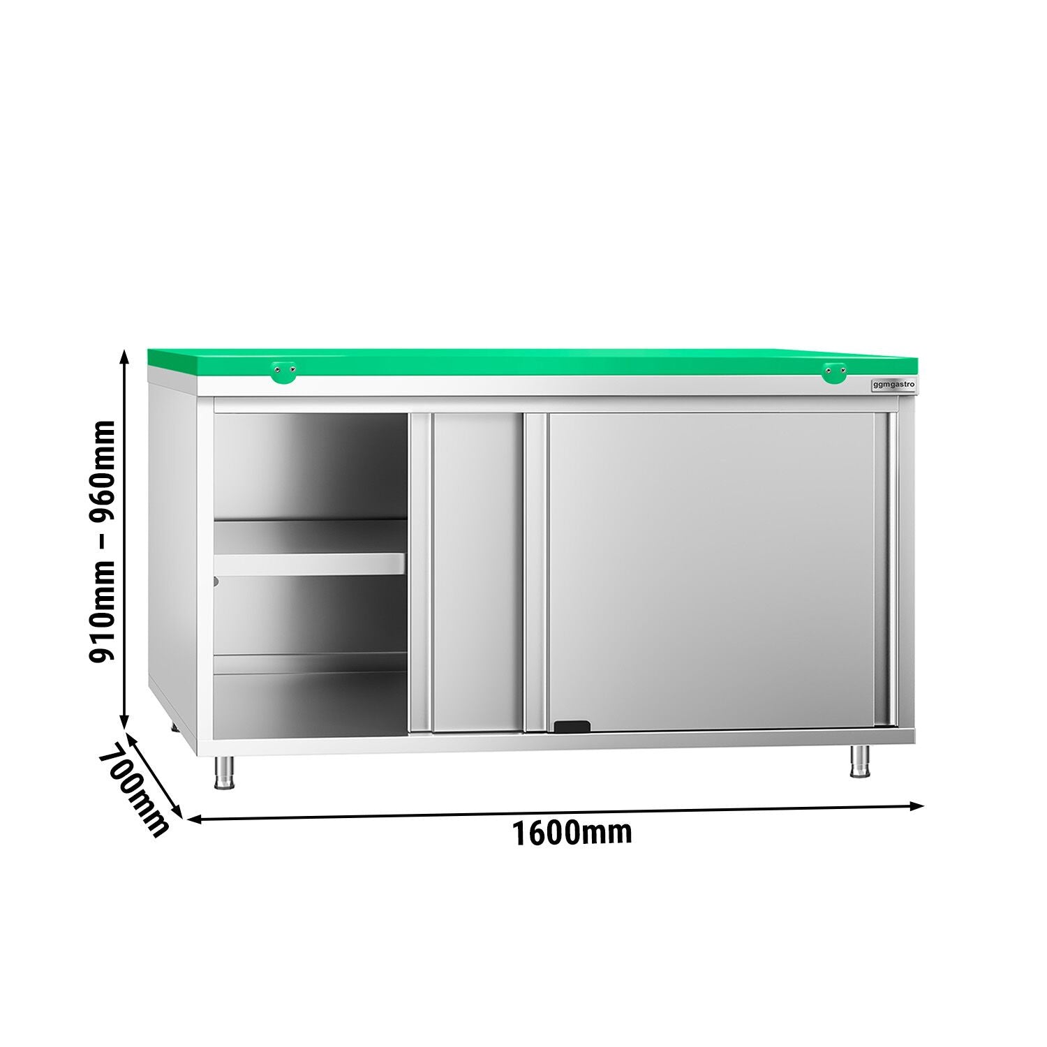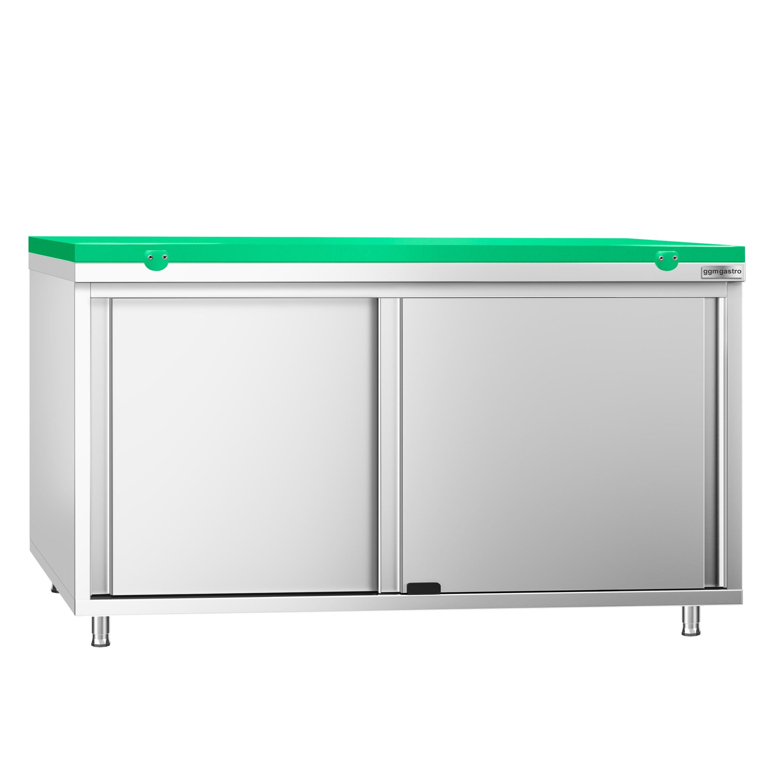 Работен шкаф от неръждаема стомана PREMIUM - 1,6 м - с плъзгаща се врата - включително дъска за рязане в зелено