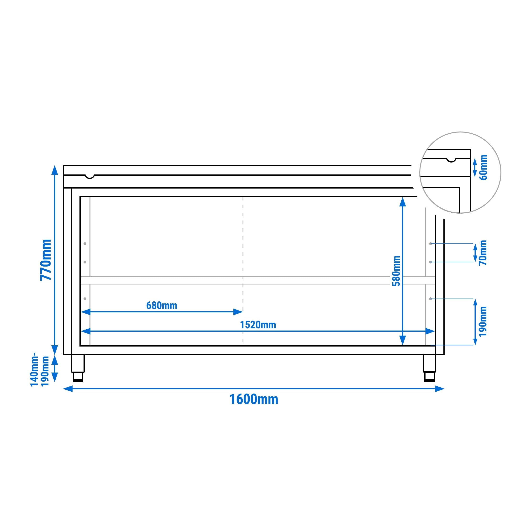 - Ш x Д x B: 1.600 mm x 700 mm x 910 mm