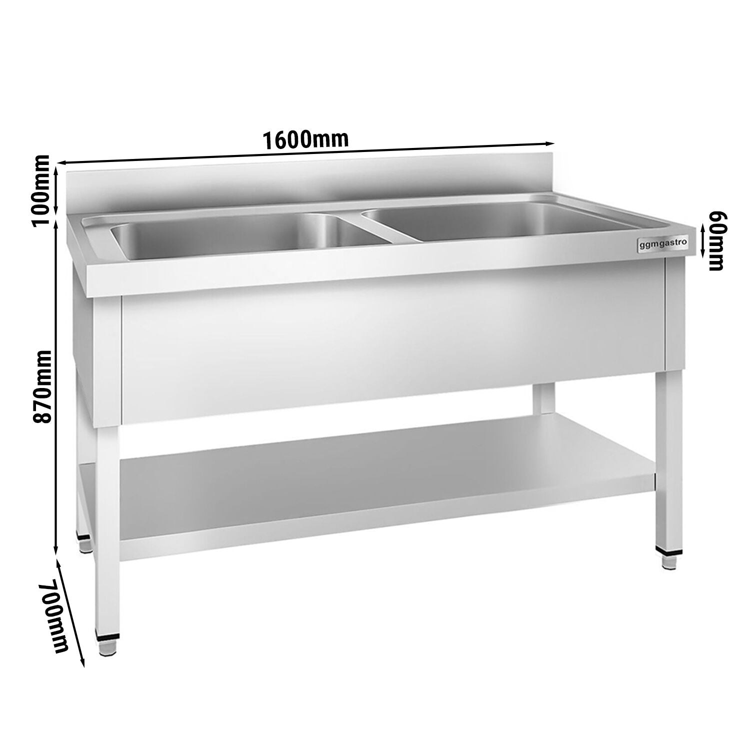 Мивка с дъно за тенджери 1,6 м - 2 легена Д 70 х Ш 50 х Дълб 35 см