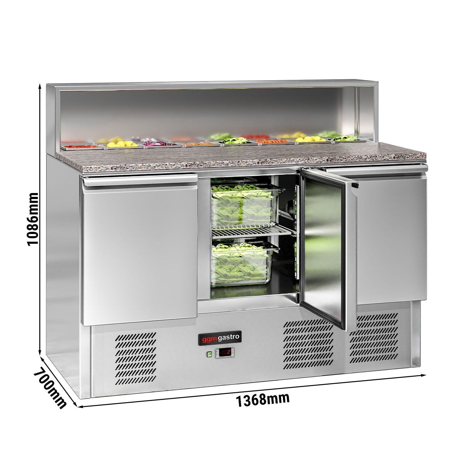 С плот от неръждаема стомана и гранитна плоча - за 8x GN 1/6