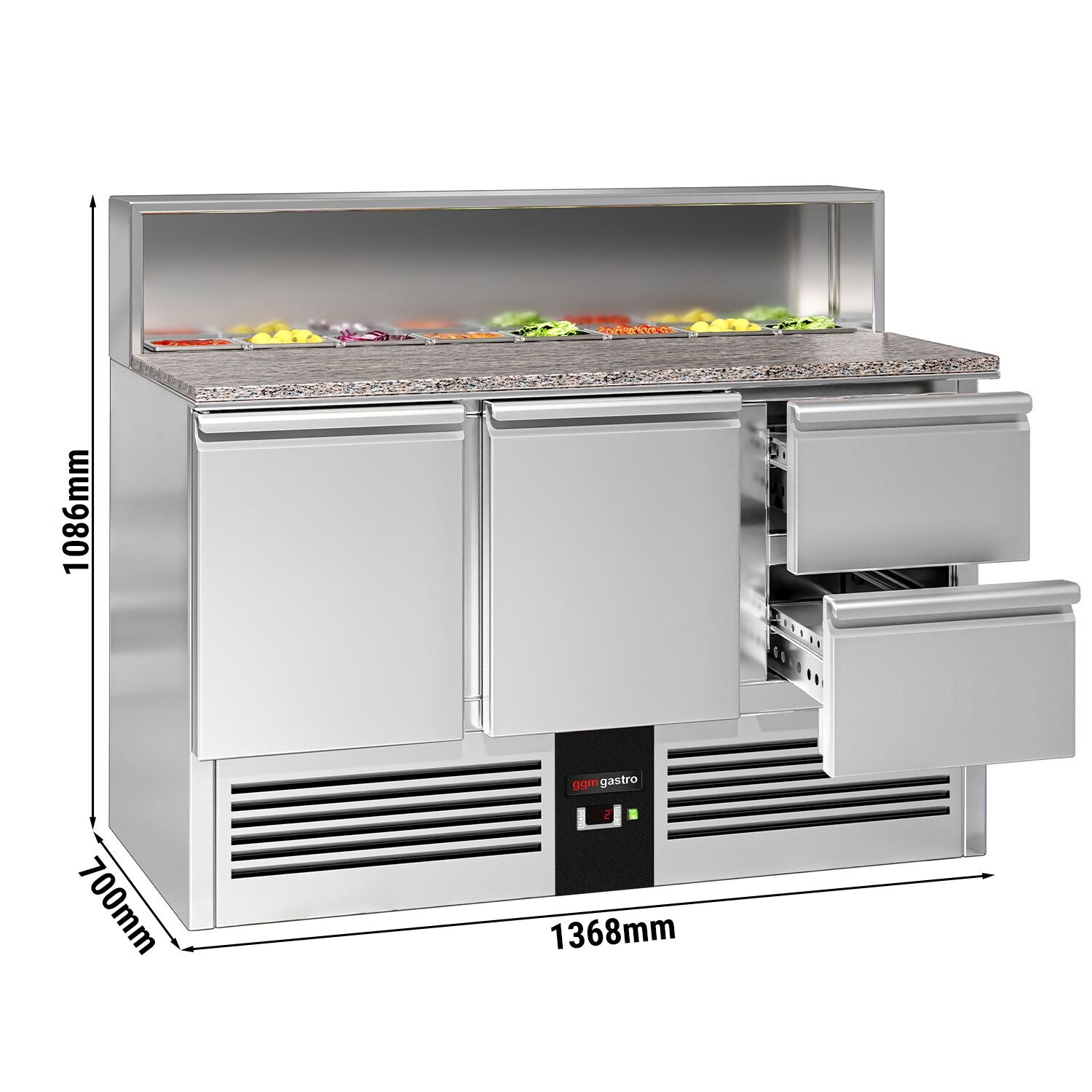 Саладета / Хладилна маса за пица PREMIUM - 1,37 x 0,7 m - с 2 врати и 2 чекмеджета 1/2