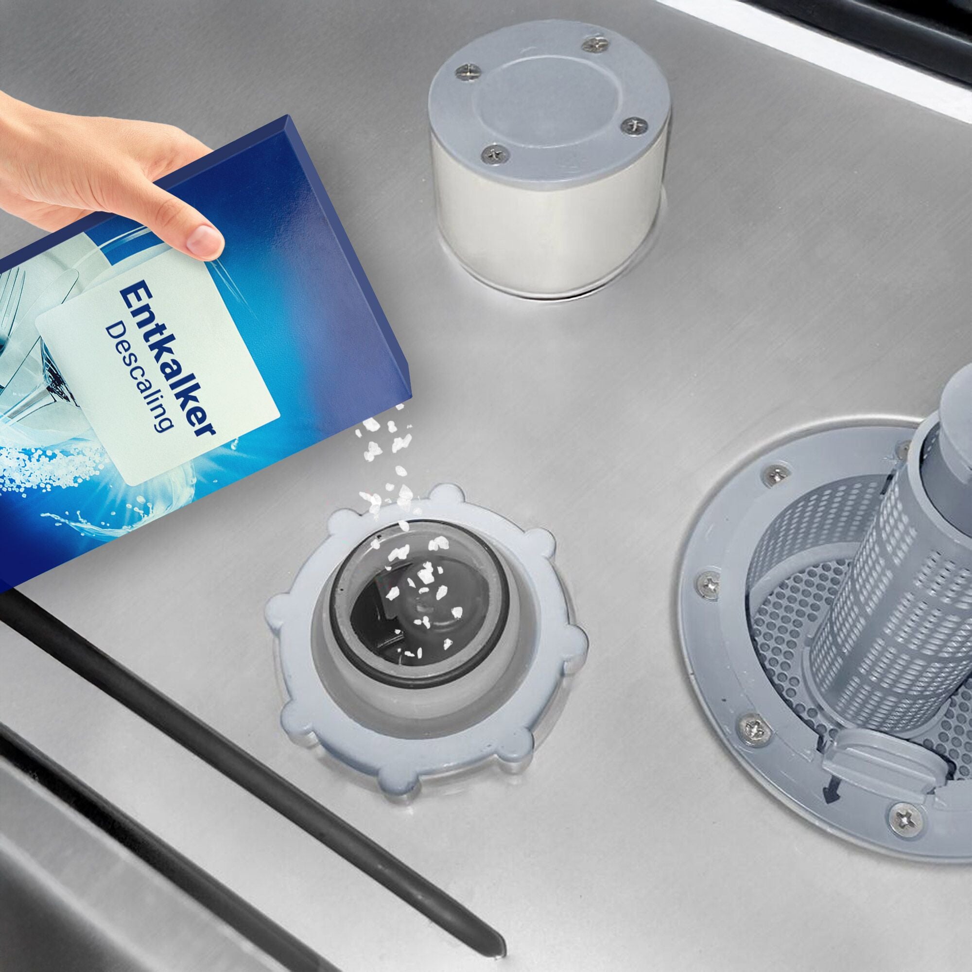 - За безпроблемното изплакване уредът и компонентите трябва да се почистят от котлен камък с помощта на свързания почистващ препарат!