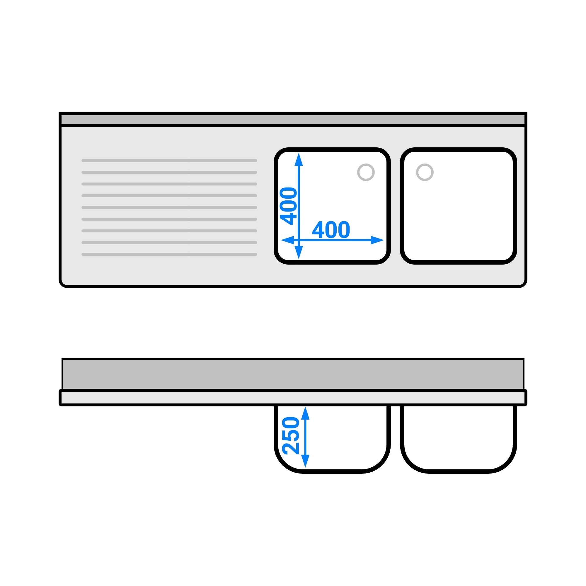 съдомиялни Мивка 1,6m - 2 легена отдясно L 40 x Ш 40 x Д 25 cm