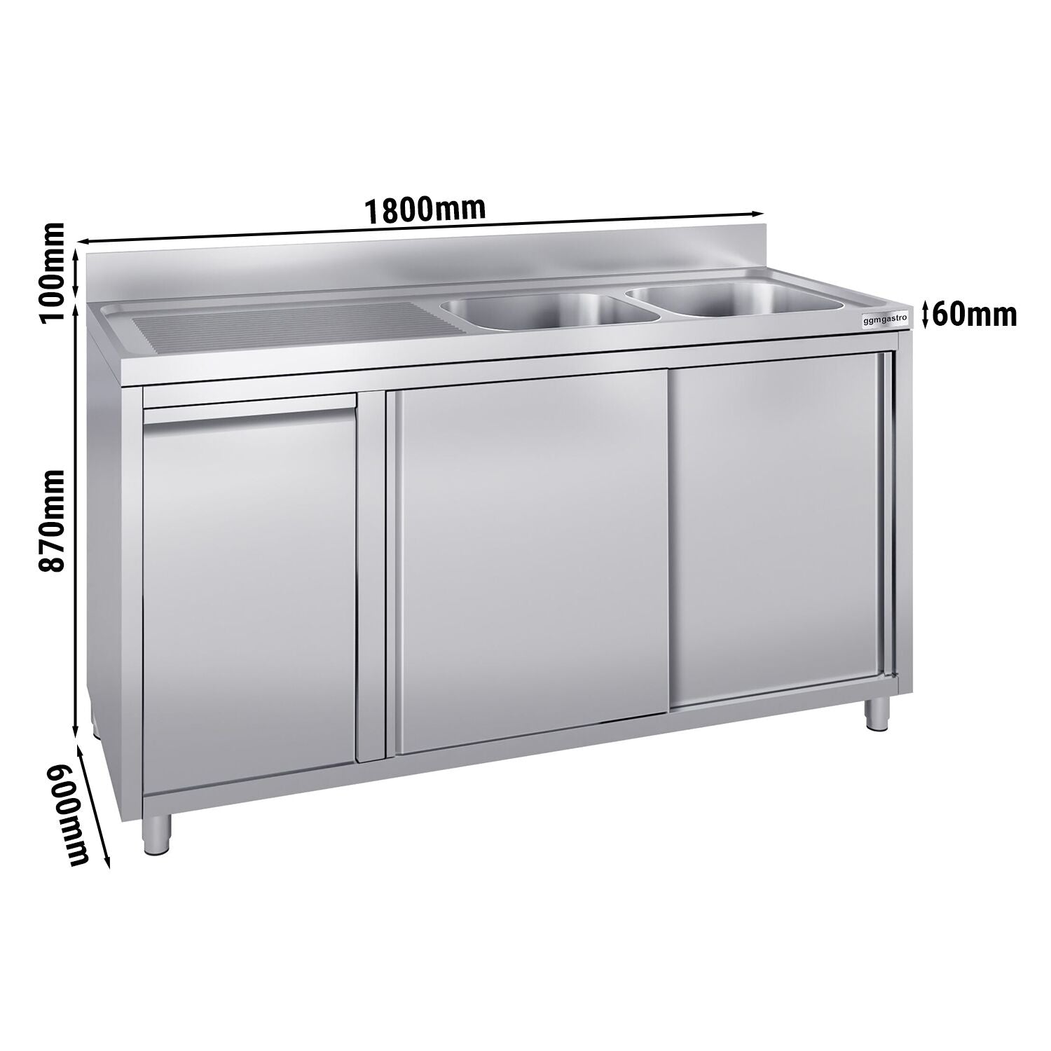 Шкаф за мивка с контейнер за отпадъци - 1,8 m - 2 мивка вдясно - с кант и двукрили врати