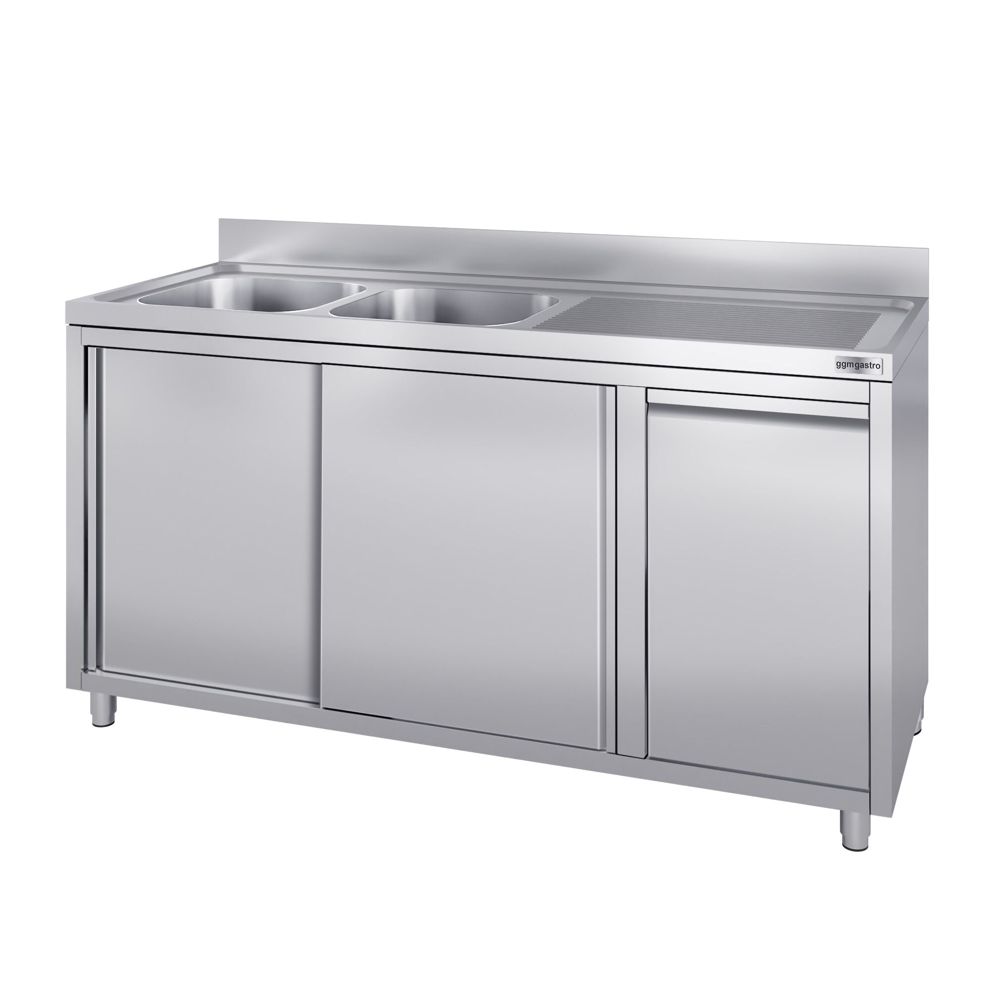 Шкаф за мивка с контейнер за отпадъци - 1,8 m - 2 мивка вляво - с кант и двукрили врати