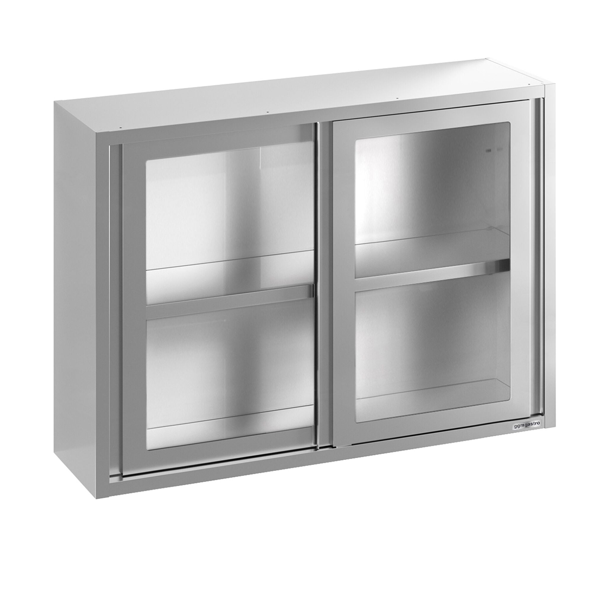 Стенен шкаф от неръждаема стомана 1,4 м - с плъзгаща се стъклена врата - 1,0 м височина