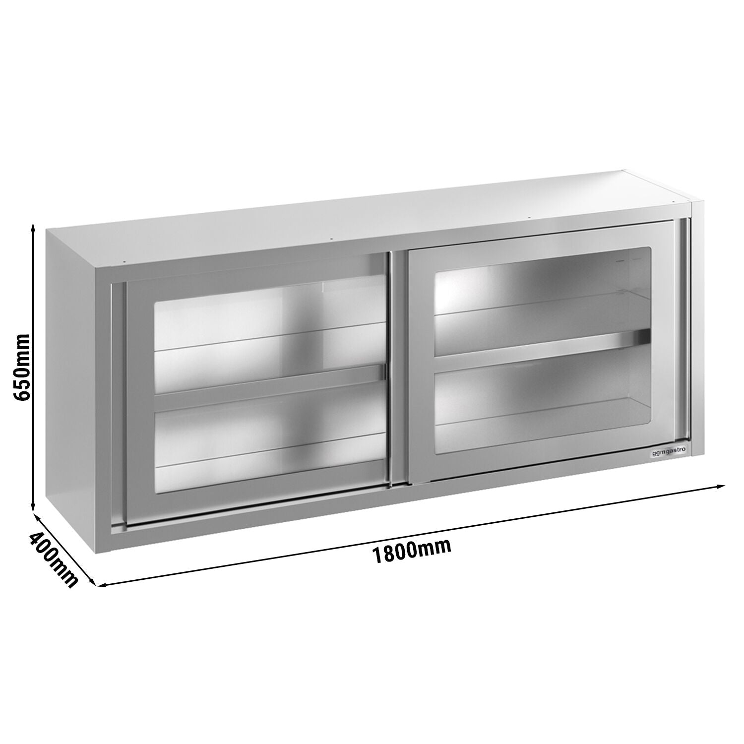 Стенен шкаф от неръждаема стомана 1,8 м - с плъзгаща се стъклена врата - 0,66 м височина
