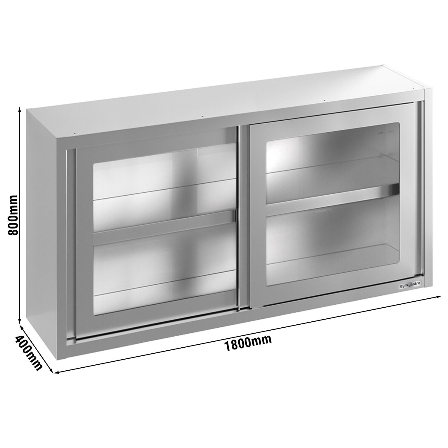 Стенен шкаф от неръждаема стомана 1,8 м - с плъзгаща се стъклена врата - 0,8 м височина