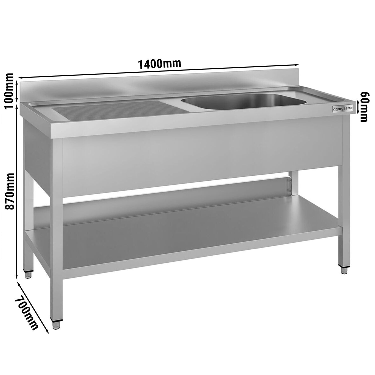 Умивалник ECO от неръждаема стомана - с основа - 1,4 м - 1 мивка отдясно - Д 60 х Ш 50 х Г 30 см
