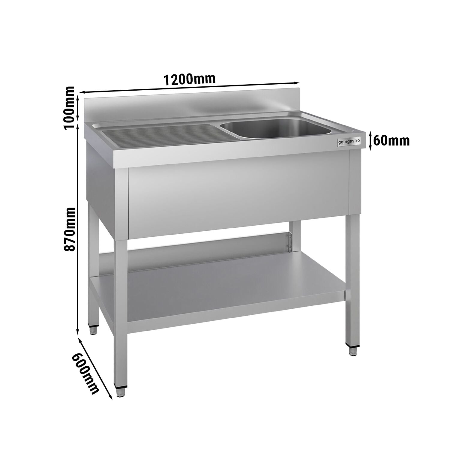 Умивалник от неръждаема стомана ECO - с основа - 1,2 м - 1 леген вдясно - Д 50 х Ш 40 х Г 25 см